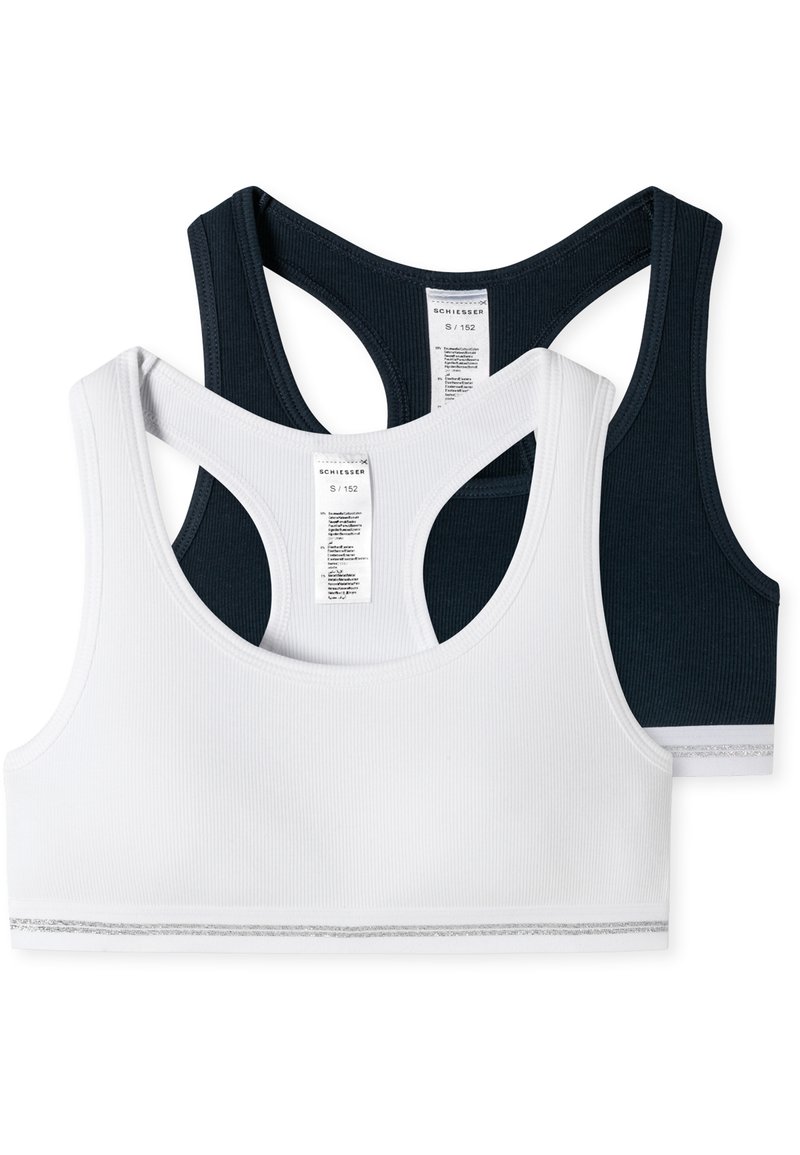 Super weich und hautfreundlich - dieses Schiesser Bustier 2er Pack ist perfekt für heranwachsende Mädchen! Hergestellt aus 95% Organic Bio-Baumwolle, ist es besonders sanft zur Haut und ideal für empfindliche Kinderhaut. Das kontrastfarbene Unterbrustband sieht nicht nur hübsch aus, sondern gibt auch angenehmen Halt. Das doppellagige Vorderteil und die eingefassten Arm- und Halsausschnitte sorgen für maximalen Tragekomfort. In elastischer Single-Jersey-Qualität passt es sich perfekt dem Körper an, ohne zu zwicken oder zu drücken. Erhältlich in den Größen 140 bis 176 - also für Mädchen in der Wachstumsphase ideal. Perfekt für den Alltag, unter Pullovern oder als Pyjama-Ersatz. Einfach praktisch, nachhaltig und mega bequem!