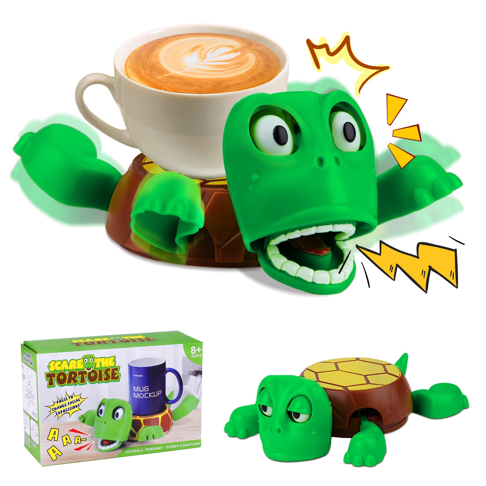 Der ultimative Hingucker für deinen Tisch! Diese niedliche Schildkröte macht aus jedem Getränk ein Erlebnis. Sobald du die Tasse auf ihren Rücken stellst, macht sie ein super-lustiges schockiertes Gesicht! Aus hochwertigem Kunststoff - sicher, geruchlos und langlebig. Mit integriertem Handyhalter - praktisch für Videos oder Nachrichten lesen während dem Trinken. Maße: 10x15cm - passt unter fast jede Tasse oder Glas. Einfach zusammenzubauen - Schraubendreher liegt bei! Perfekt für Kaffee-Liebhaber, Tier-Fans oder alle, die ihrem Zuhause mehr Humor verleihen wollen. Tolles Geschenk für Geburtstage, Weihnachten oder einfach mal so. Bring deine Gäste zum Lachen - mit diesem cleveren Untersetzer! Einfach aufstellen und staunen!