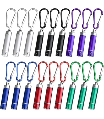 Total niedliche Mini-Taschenlampen, die Kinderherzen höher schlagen lassen! Dieses 18-teilige Set in sechs knalligen Farben (blau, rot, grün, schwarz, silber, lila) ist perfekt für kleine Entdecker. Jede Taschenlampe ist aus robuster Aluminiumlegierung gefertigt und kommt mit 3 Knopfbatterien - sofort einsatzbereit! Einfach das Isolierblech entfernen, Deckel festschrauben und schon leuchtet's. Super praktisch als Schlüsselanhänger für Rucksäcke oder Schlüsselbund, aber auch als Notfalllicht für dunkle Ecken. Ideal als Mitbringsel für Kindergeburtstage, als Partygeschenk oder für die Schatzsuche im Garten. Die kleinen Leuchten sind nicht nur Spielzeug, sondern wirklich nützlich - beim Camping, Wandern, Nachtangeln oder als Leselicht. Kinder lieben die bunten Farben und das coole Gefühl, ihr eigenes Licht dabei zu haben. Ein tolles Geschenk für Jungen und Mädchen ab 3 Jahren - da strahlen nicht nur die Lämpchen, sondern auch die Kinderaugen!