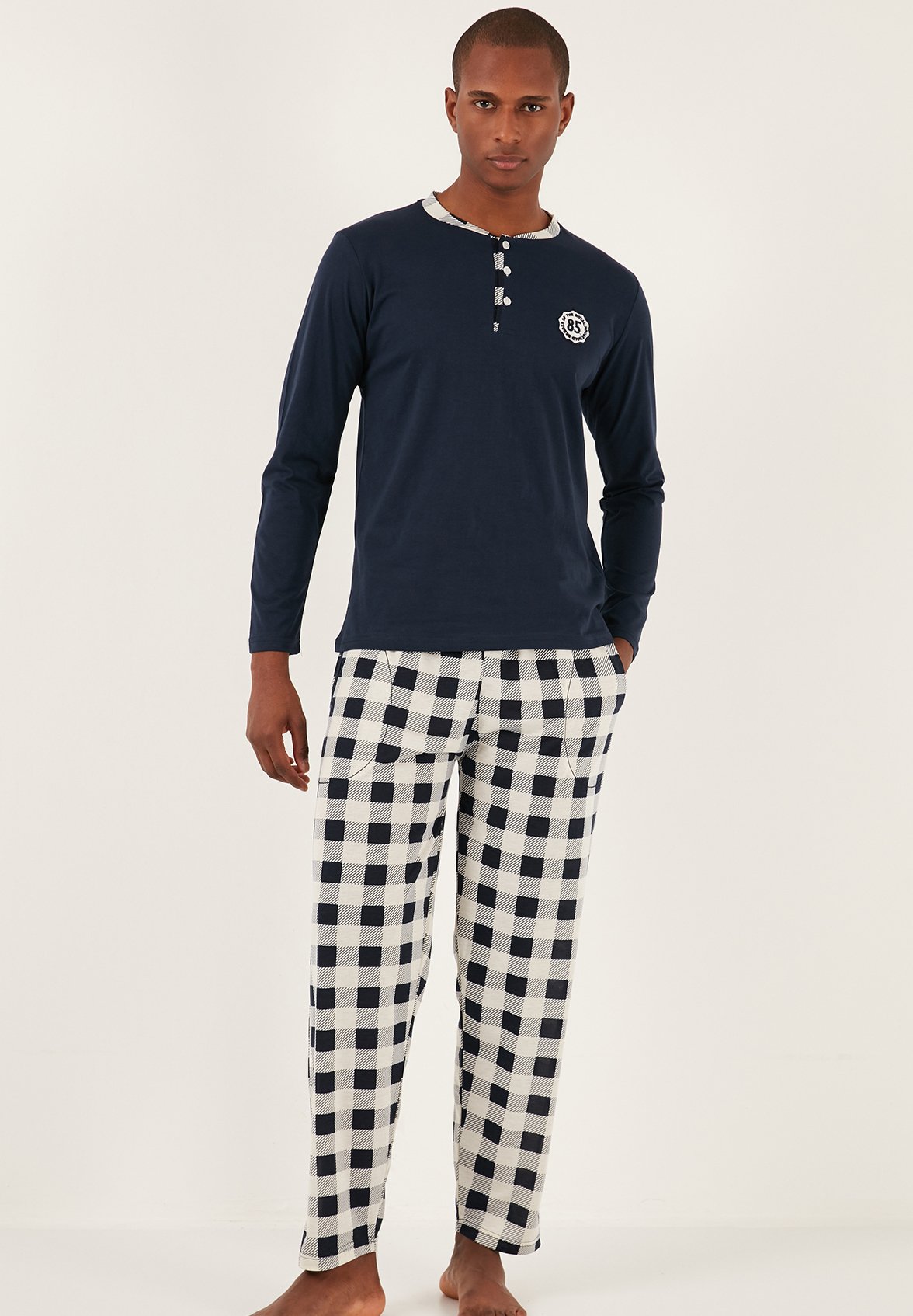 • Oberteil: Langarm mit Knopfleiste und Brusttasche