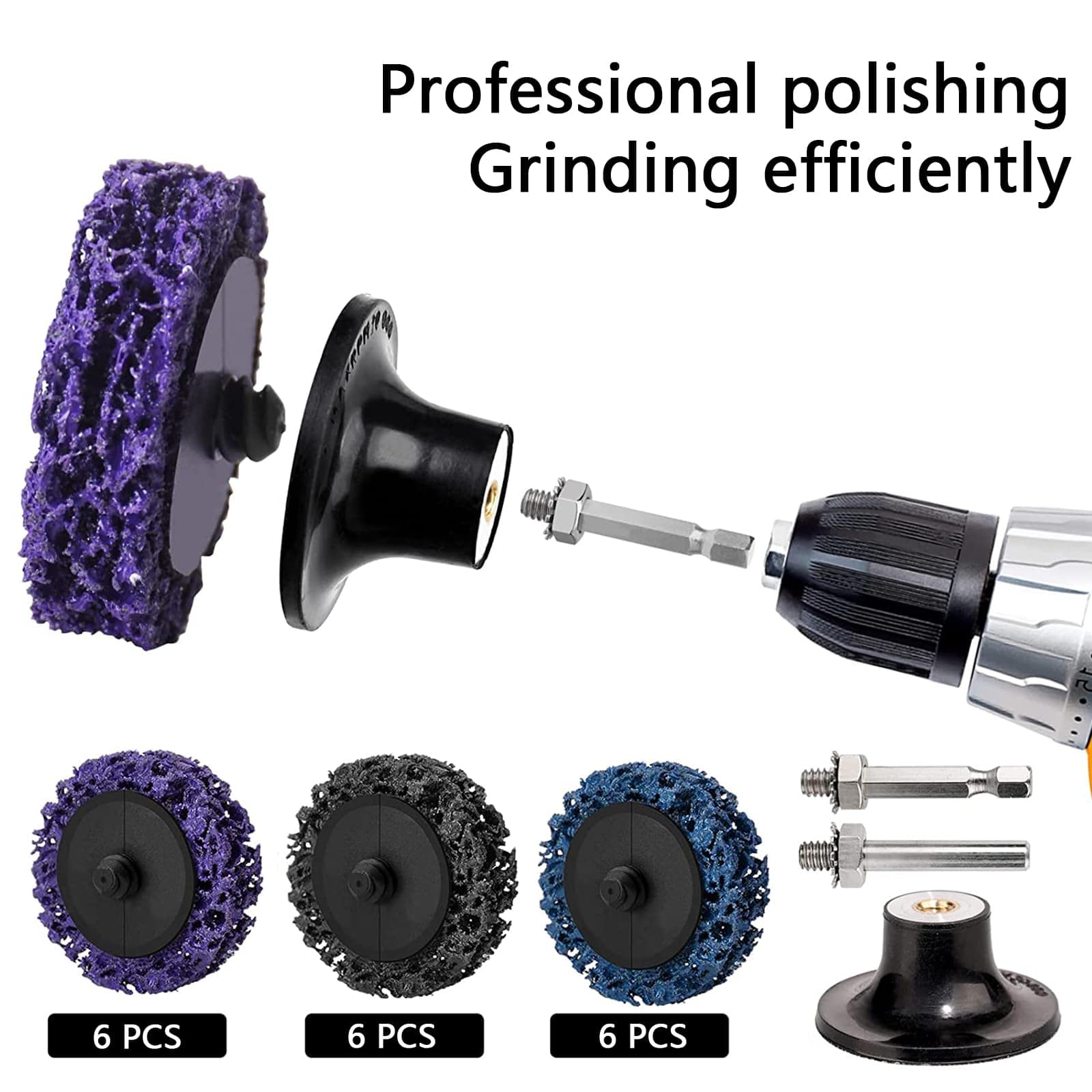 Dieses 9-teilige Schleifscheiben-Set von NUTKIT ist ein echter Alleskönner für deine Werkstatt! Die Scheiben mit 50 mm Durchmesser passen auf die meisten Winkelschleifer. Du bekommst je 3 Scheiben in Lila, Blau und Schwarz - jede Farbe hat eine andere Stärke: Lila für Hartschleifen und Präzisionsarbeiten, Blau für mittlere Reinigung (Rost, Farbe entfernen) und Schwarz für weiche Oberflächenbehandlung. Hergestellt aus Nylongewebe mit Siliziumkarbid-Schleifmittel und Harzbindung sind die Scheiben extrem langlebig und wasserbeständig. Das Wabendesign verbessert die Luftzirkulation, reduziert Staub und verhindert Überhitzung. Ideal zum Entrosten, Entlacken, Entgraten und Polieren von Metall, Edelstahl, Holz, Kunststoff und mehr. Jede Scheibe wird mit Schraube und Mutter geliefert - die Montage ist schnell erledigt. Maximal 16.000 U/min (empfohlen 12.000 U/min). Wichtig: Immer Schutzbrille und Maske tragen! Perfekt für Autoarbeiten, Baumprojekte oder Möbelrestaurierung - professionelle Ergebnisse garantiert!