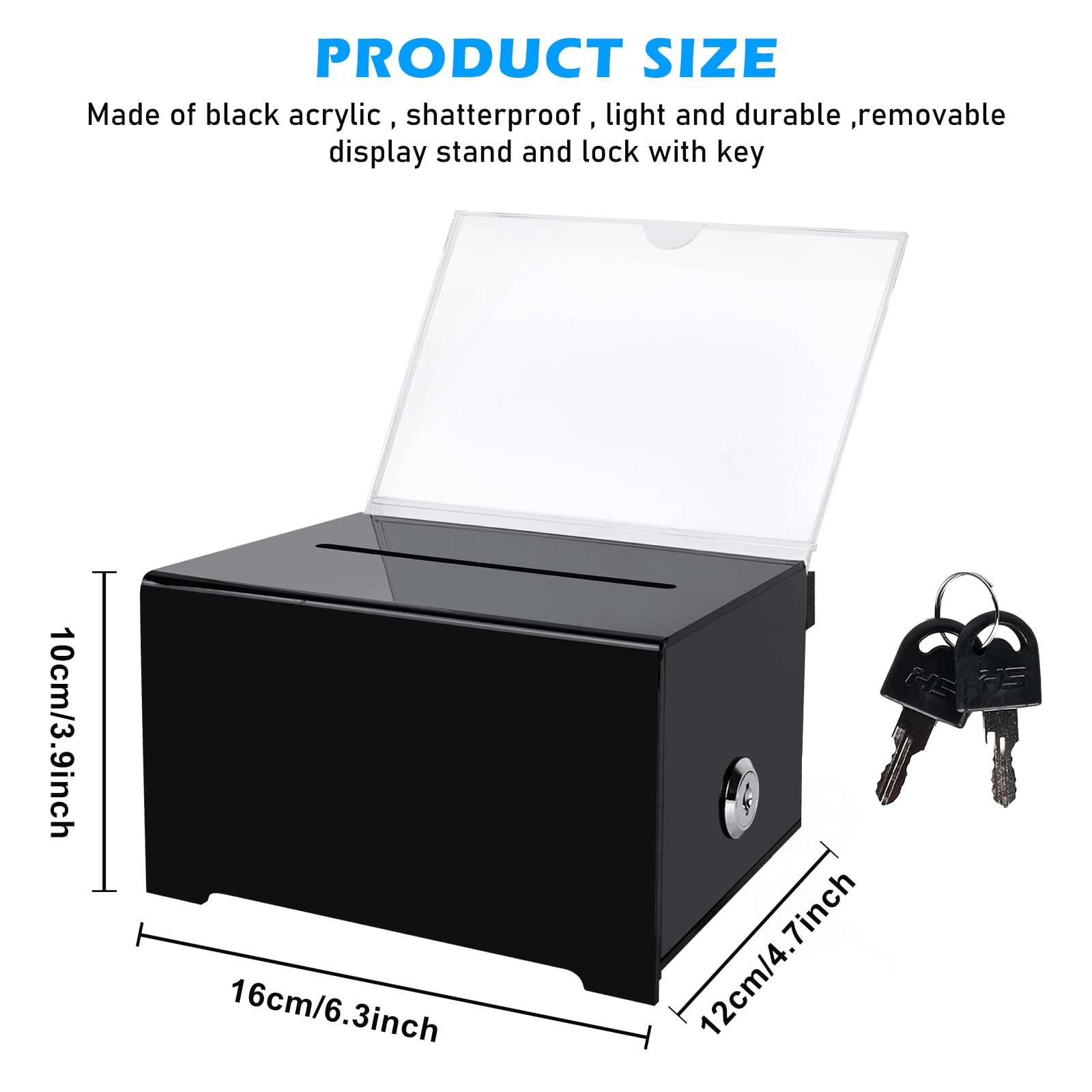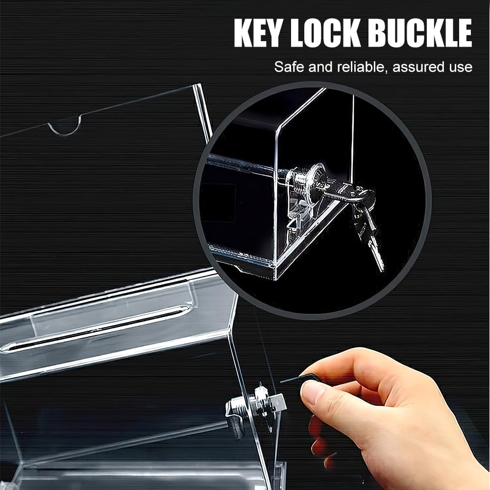 Hey, wenn du mal was sammeln willst - ob Spenden, Stimmzettel oder Feedback - diese Acryl-Box ist perfekt! Sie ist aus stabilem, klarem Acryl, sodass jeder sehen kann, was drin ist (aber natürlich nicht rankommt!). Das coole Feature: Sie hat ein abschließbares Fach unten dran - inklusive zwei Schlüssel. So ist der Inhalt sicher verwahrt, bis du die Box wieder öffnen willt. An der Vorderseite ist ein praktischer Schilderhalter, wo du dein eigenes Label reinmachen kannst. Ob 'Spenden', 'Feedback' oder 'Stimmen' - du bestimmst, wofür die Box gerade verwendet wird. Mit den Maßen 16x10x12 cm ist sie handlich genug zum Transportieren, aber groß genug für ne ordentliche Menge an Zetteln oder Geld. Die Füße an den Ecken sorgen für stabilen Stand. Super für Schulen, Büros, Veranstaltungen oder einfach für zu Hause als Spardose. Transparent, sicher und vielseitig - genau das richtige für alle, die was sammeln wollen!