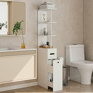 • BEWISHOME Badschrank Schmal Hoch - 180cm Mit Schublade & Verstellbaren Regalen