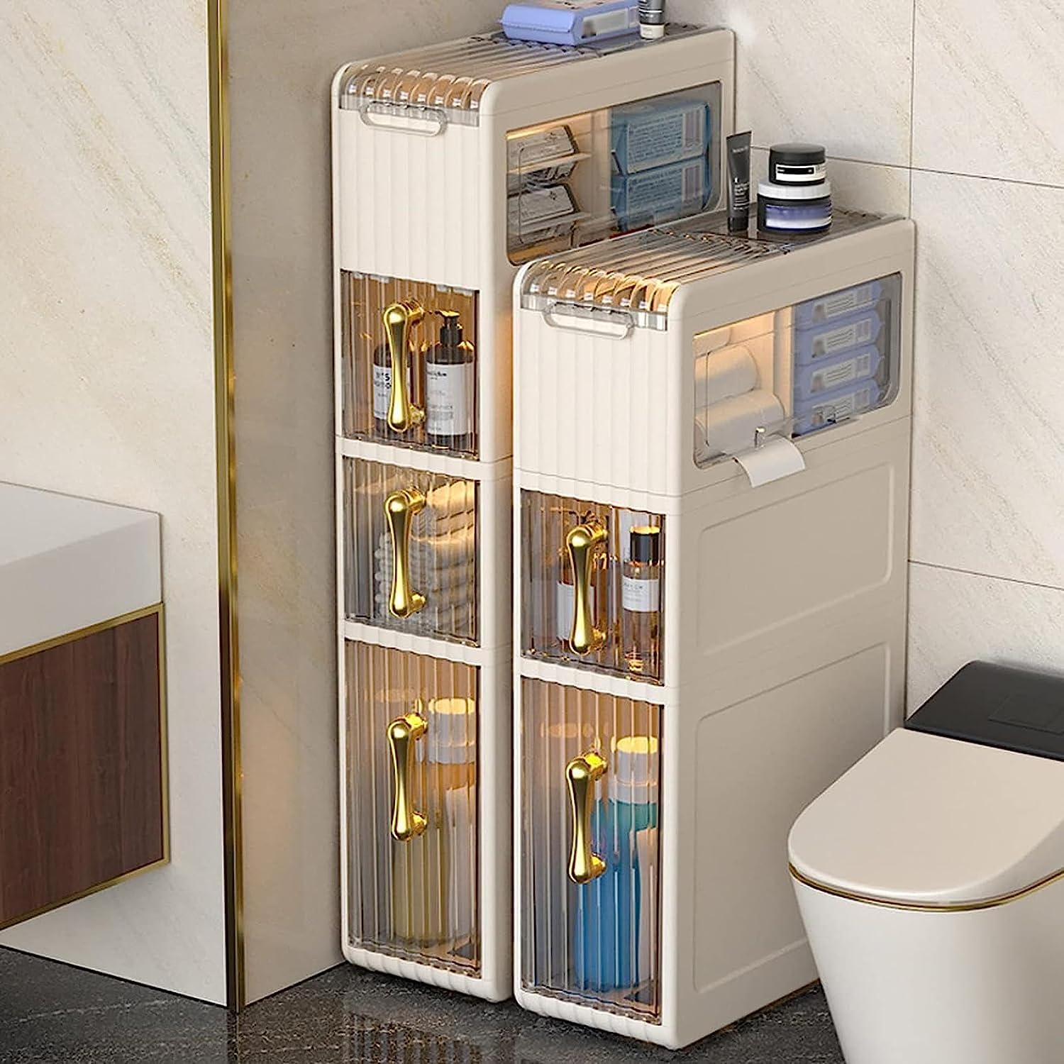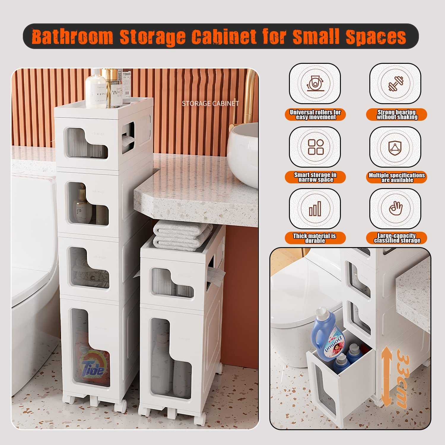 Wow, dieser schmale Schrank rettet dich vor dem Badezimmer-Chaos! Passt perfekt in jede Ecke - besonders neben die Toilette, wo sonst nur leerer Raum ist. Nur 20x20cm Grundfläche, aber trotzdem mega viel Stauraum. Die Regale sind verstellbar, also kannst du hohe Flaschen, Putzmittel oder Toilettenpapier unterbringen. Oben ein Fach speziell für die Toilettenpapier-Rolle - praktisch! Aus stabilem MDF, in schickem Schwarz. Mit Anti-Kipp-Set für absolute Sicherheit (bitte unbedingt montieren!). Einfache Montage mit beiliegender Anleitung - auch für Nicht-Handwerker machbar. Sieht modern aus mit den klaren Linien. Endlich alles ordentlich: Handtücher, Hygieneartikel, Putzzeug... alles hat seinen Platz. Kein Gewusel mehr morgens! Und wischen kannst du ihn einfach mit nem feuchten Tuch. Perfekt für kleine Bäder, Gästetoiletten oder WG-Bäder, wo jeder Zentimeter zählt.