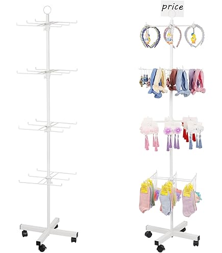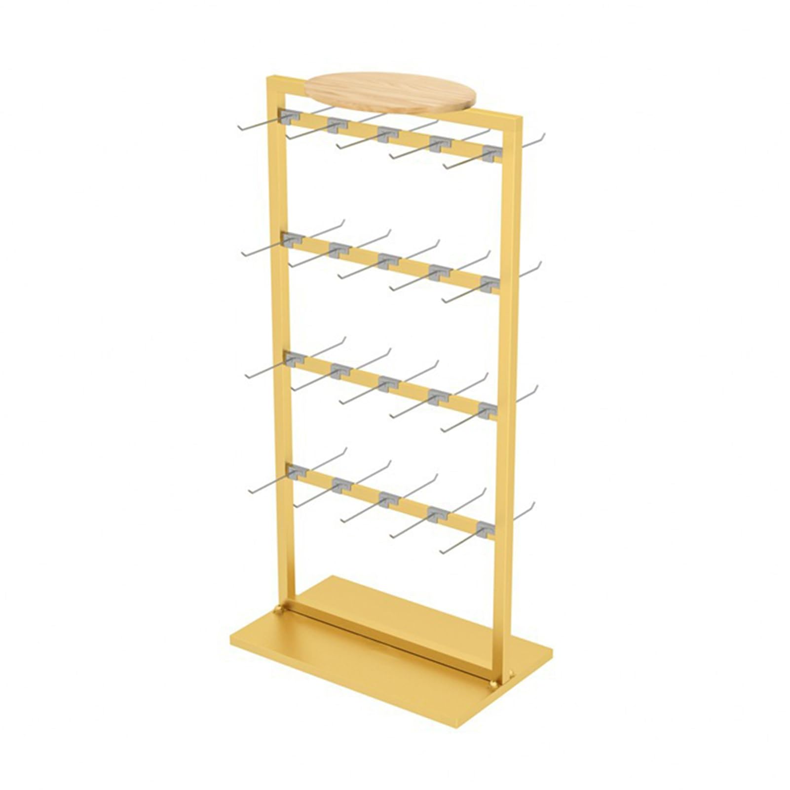 Perfekt für deinen Laden oder Verkaufsraum! Dieser robuste Verkaufsständer aus Metall hat 4 Etagen und bietet jede Menge Platz für deine Ware. Ob Socken, Schmuck, Hüte oder Schlüsselanhänger - alles findet hier seinen Platz. Das coole an dem Ständer: Er ist doppelseitig, also von vorne und hinten bespielbar. So können deine Kunden von allen Seiten gut sehen was du anzubieten hast. Oben gibt's noch eine extra Ablagefläche für Kassen, Werbematerial oder besondere Angebote. Der Ständer ist super stabil und steht sicher, auch wenn er voll beladen ist. Einfach aufbauen und sofort loslegen! Ideal für Einkaufszentren, Ausstellungsräume oder Pop-up-Stores. Mit diesem Ständer machst du deine Produkte richtig gut sichtbar und steigerst garantiert deine Verkäufe. Ein echter Allrounder der sich in jedem Geschäft gut macht. Praktisch, funktional und sieht dabei noch professionell aus!