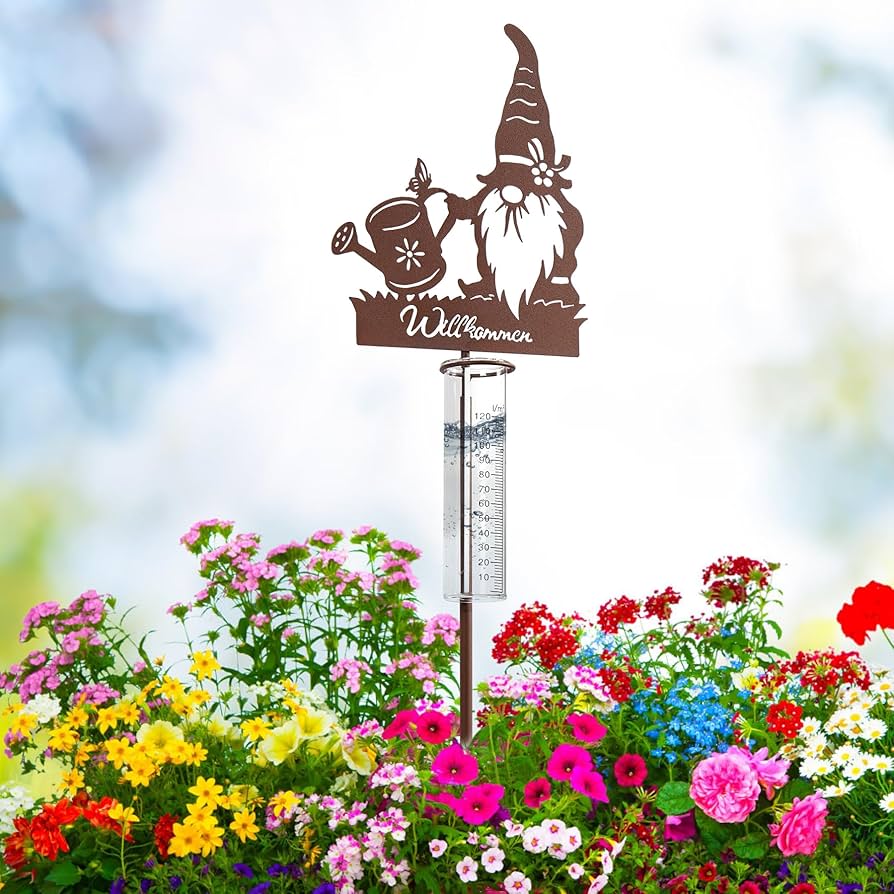 Wie niedlich ist denn dieser Schnecken-Regenmesser! Das ist nicht nur ein praktisches Messgerät, sondern auch ein echter Hingucker für deinen Garten. Mit 93cm Höhe und aus robustem Eisen gefertigt, hält er auch bei schlechtem Wetter stand. Einfach den Erdspieß in die Erde stecken - schon kannst du genau verfolgen, wie viel Regen gefallen ist. So weißt du immer, ob deine Pflanzen genug Wasser bekommen haben oder ob du gießen musst. Perfekt für Terrasse, Balkon, Rasen oder Garten! Das süße Schneckendesign bringt Leben in deinen Außenbereich und zieht garantiert Blicke auf sich. Mit ca. 549g Gewicht steht er stabil und kippt nicht so schnell um. Super praktisch für alle Hobby-Gärtner und Wetter-Begeisterte! Einfach installieren und schon hast du deine eigene kleine Wetterstation. So macht Gartenarbeit noch mehr Spaß und du behältst immer den Überblick über den Niederschlag.