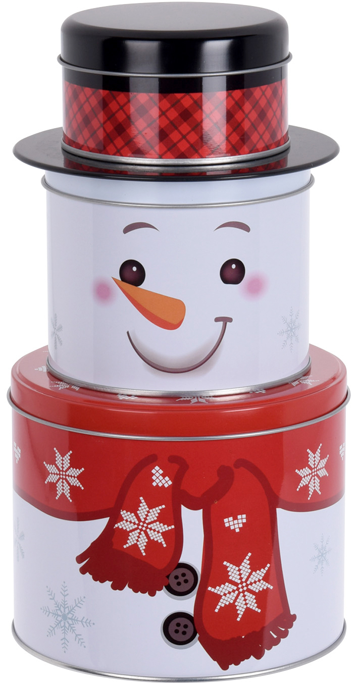 Süße Schneemann-Keksdosen für die Weihnachtszeit! Dieses 3-teilige Set in niedlichem Schneemann-Design bringt Festtagsstimmung in dein Zuhause. Aus Metall mit dicht schließenden Deckeln.