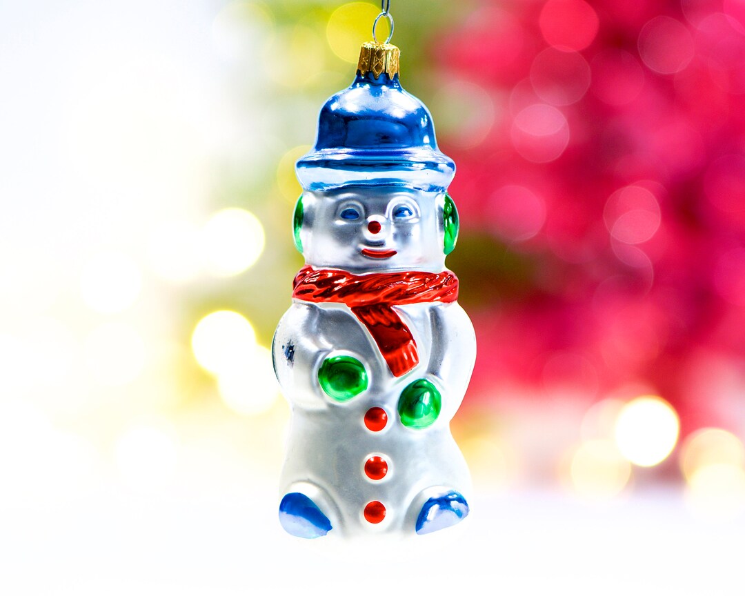 Hzyc Schneemann Weihnachtsbaumschmuck - Handgeblasenes Glas Ornament 9cm
