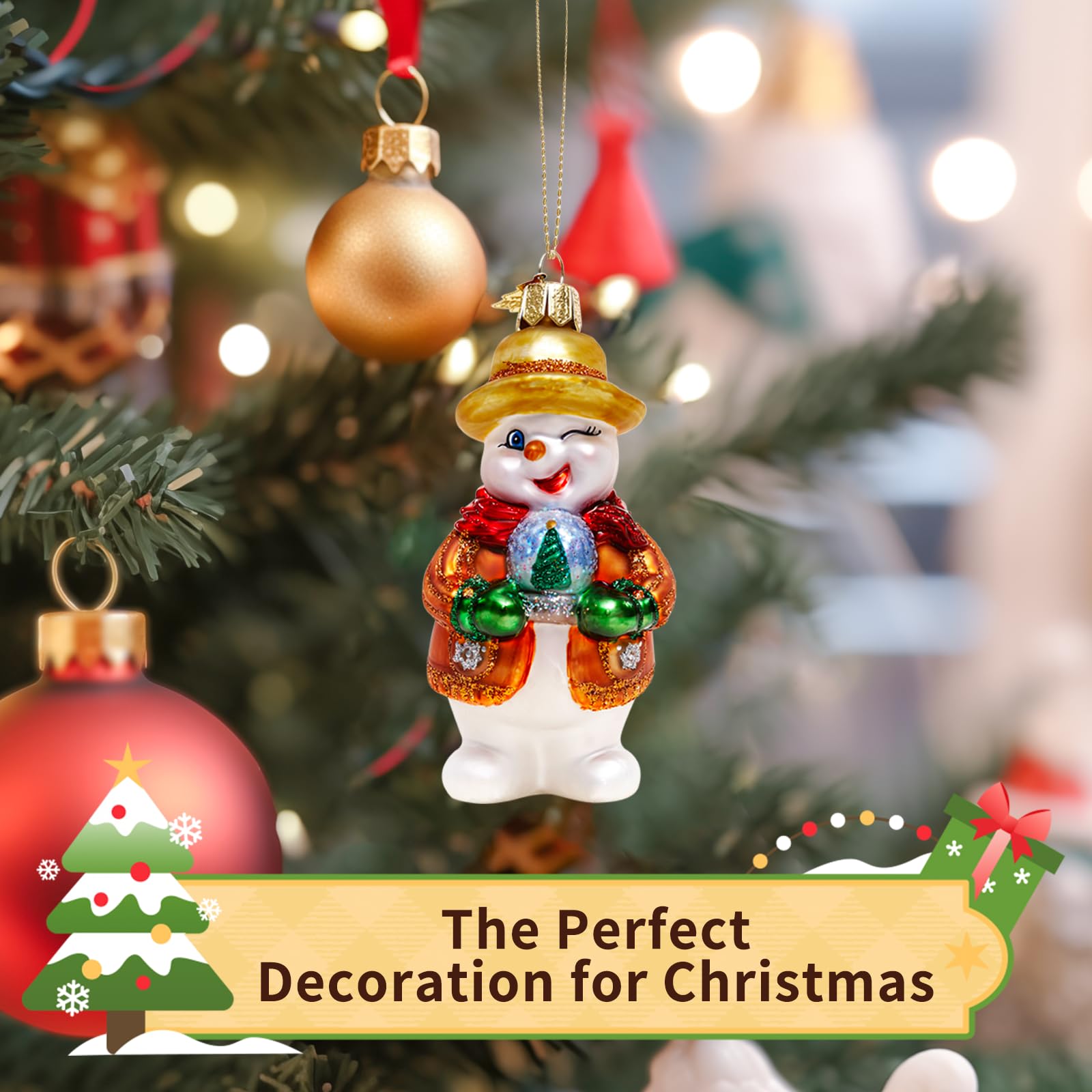 • Hzyc Schneemann Weihnachtsbaumschmuck - Handgeblasenes Glas Ornament 9cm
