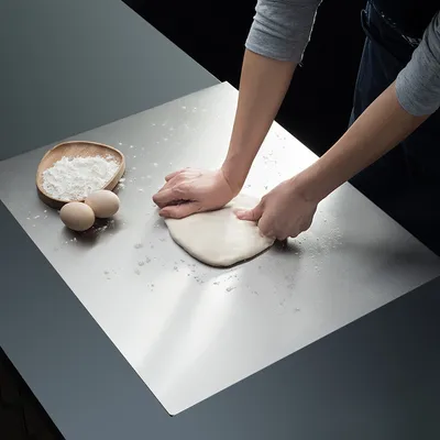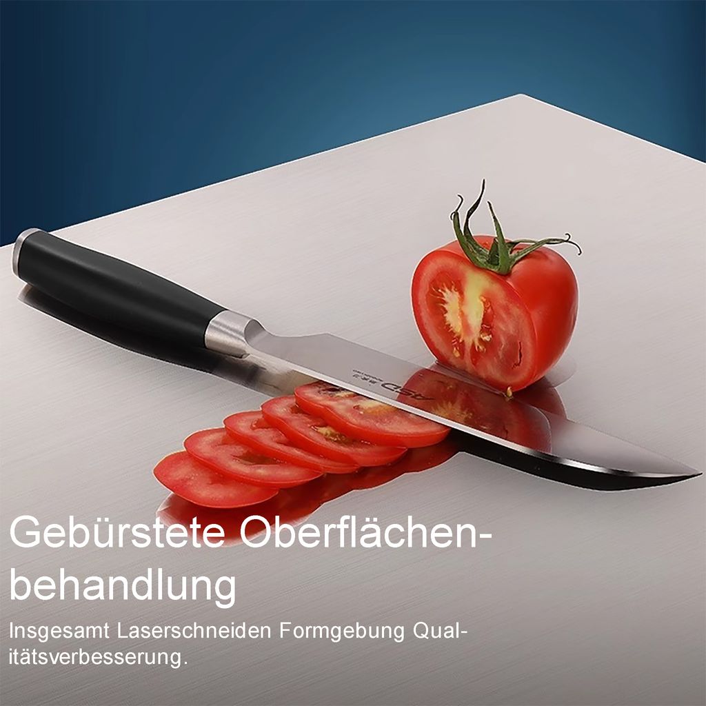 Revolution in der Küche! Dieses Edelstahl-Schneidebrett mit Titan-Beschichtung macht endlich Schluss mit herkömmlichen Holz- und Plastikbrettern. Mit den großzügigen 40x30cm hast du genug Platz für alle Schneidearbeiten - ob Gemüse, Fleisch oder Teig. Die Oberfläche ist absolut kratzfest, rostfrei und nimmt keine Gerüche oder Flüssigkeiten auf. Keine Ritzen, keine Bakterienherde - einfach hygienisch sauber! Reinigen? Super einfach: Einfach unter fließendem Wasser abspülen oder abwischen, und schon ist es wieder blitzblank. Perfekt für die professionelle Küche, aber auch ein Traum für jeden Hobbykoch. Die 1,5mm Stärke macht es stabil und langlebig, aber dennoch leicht zu handhaben. Ob zum Brotbacken, Fleischschneiden oder Gemüsevorbereiten - dieses Brett ist ein echter Alleskönner. Mach deine Küchenarbeit effizienter und hygienischer - du wirst nie wieder zu einem herkömmlichen Schneidebrett zurück wollen!