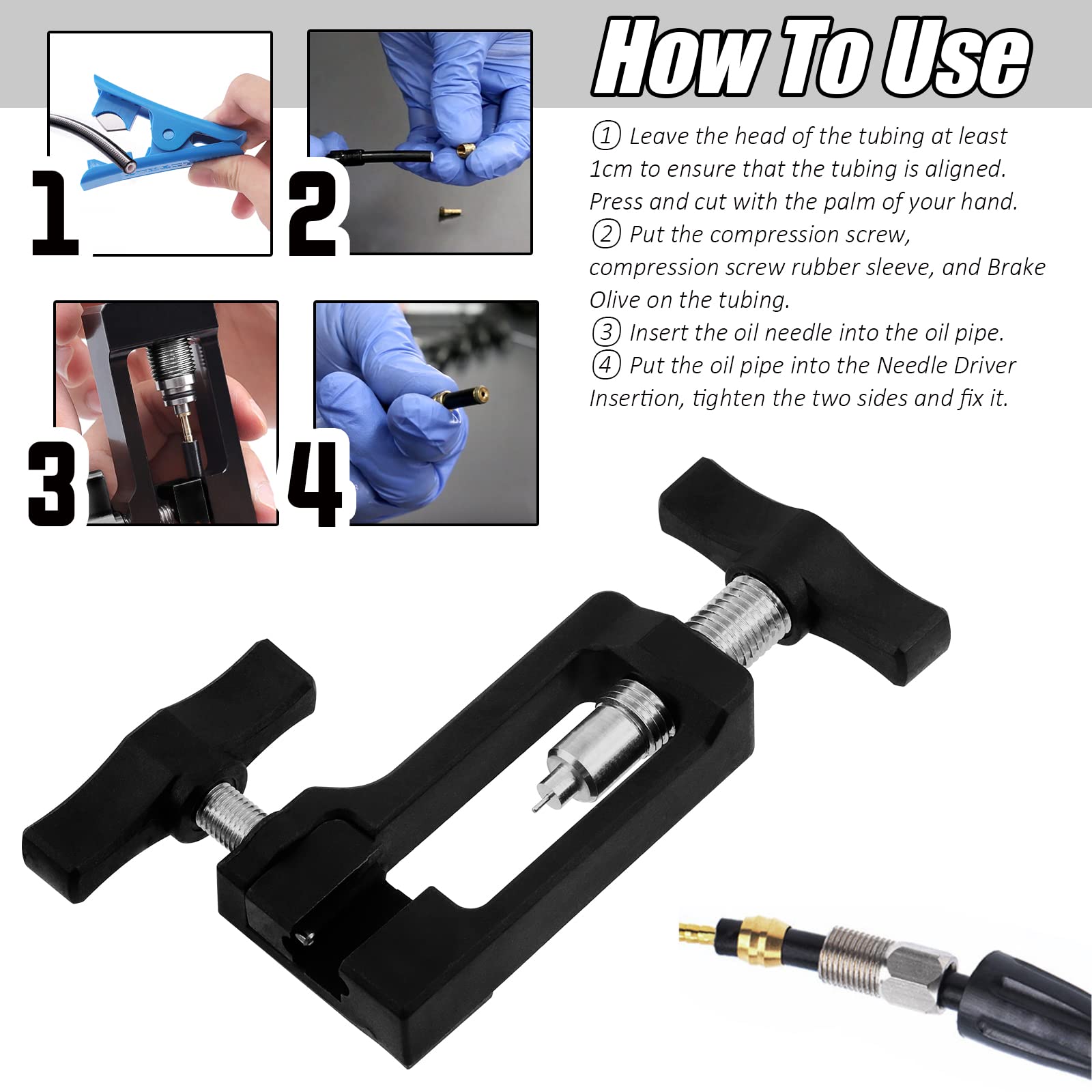 Professionelle Bremsenwartung für dein Bike! Dieses 2-in-1 Werkzeug kombiniert Schlauchschneider und Einpresswerkzeug in einem. Schneide Hydraulikschläuche präzise zu und setze Ölnadeln ein - ohne Werkzeugwechsel!