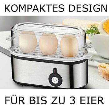 Frühstückseier in Rekordzeit? Mit diesem Mikrowellen-Eierkocher klappt's! Einfach Wasser und Eier in den blauen Dampfgarer füllen, für wenige Minuten in die Mikrowelle stellen und schon hast du perfekt gedämpfte Eier. Super praktisch für alle, die morgens wenig Zeit haben.\\n\\nAus hochwertigem PP-Kunststoff in Lebensmittelqualität, der hohen Temperaturen problemlos standhält. Das trichterförmige Design sorgt dafür, dass das Ei sanft ins Wasser gleitet und das Eigelb nicht zerläuft. Mit praktischem Filter für noch bessere Ergebnisse.\\n\\nDämpfen ist dazu noch eine super gesunde Zubereitungsart, da alle wichtigen Nährstoffe in den Eiern erhalten bleiben. Und das Beste: Die Reinigung ist ein Kinderspiel! Einfach mit Wasser abspülen oder in die Spülmaschine stellen - die antihaftbeschichtete Oberfläche macht's möglich.\\n\\nTipp: Die Garzeit variiert je nach Mikrowellenleistung, also am Anfang lieber etwas kürzer dämpfen und bei Bedarf verlängern. Mit 120g Gewicht und 24x11,5x6cm Maßen ist der Eierkocher auch platzsparend in jeder Küche unterzubringen. Einfach genial für ein schnelles, gesundes Frühstück!