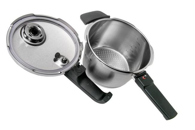 Moin Hobbyköche! Dieser Fissler Schnellkochtopf ist ein echter Game-Changer in der Küche. 2,5 Liter Volumen, 18cm Durchmesser - perfekt für 2-3 Personen. Aus 18/10 Edelstahl - rostfrei und langlebig. Spart bis zu 70% Garzeit und 50% Energie - super effizient! Mit 2 Garstufen: Schongaren für Fisch und Gemüse, Schnellgaren für Fleisch und Eintöpfe. Ampelfunktion zeigt dir genau wann's soweit ist. Für alle Herdarten - auch Induktion. Made in Germany - Qualität die überzeugt. Einfach bedienen, sicher und spart echt Zeit und Geld!