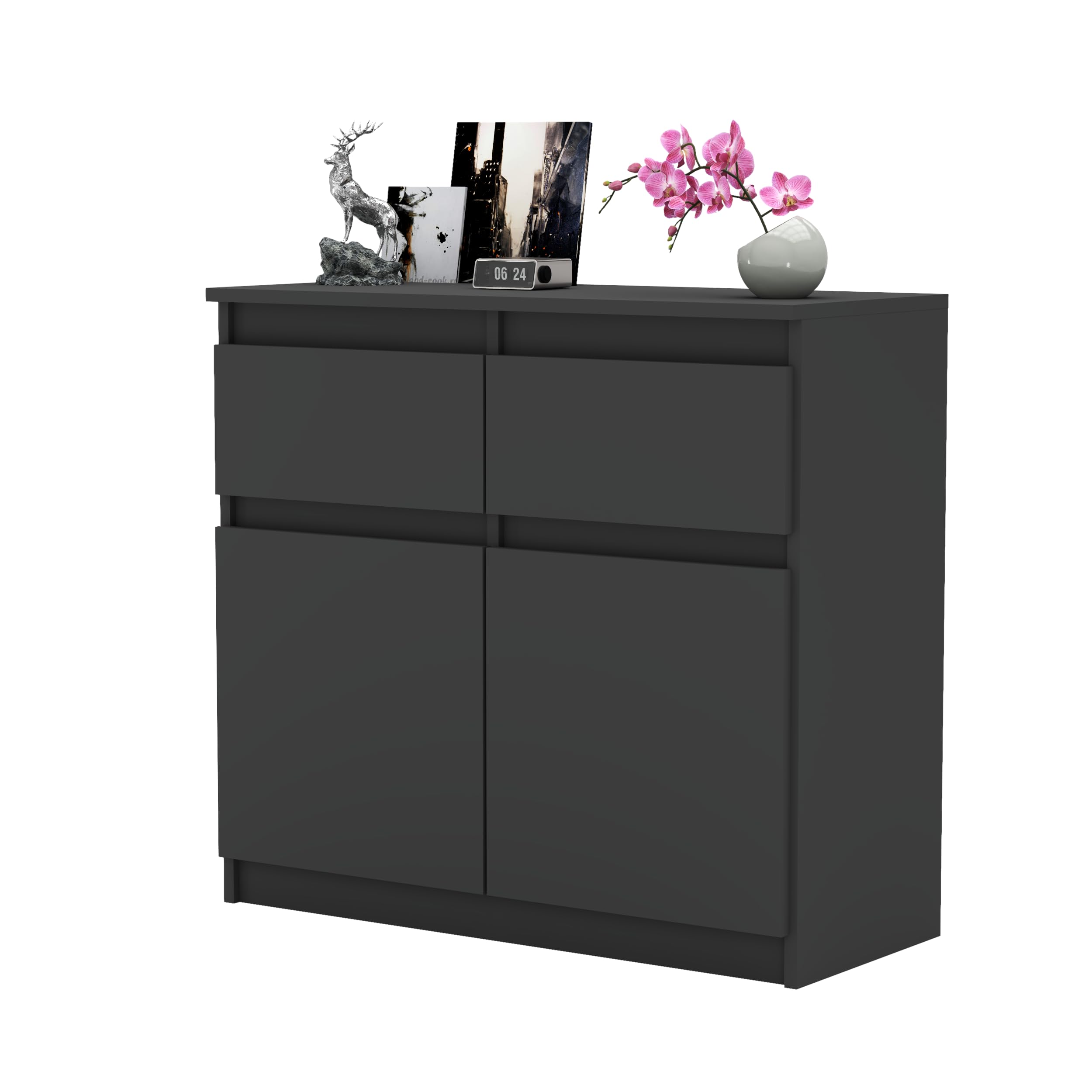 Ordnung muss nicht langweilig sein! Die ALEXO Kommode im modernen Design mit grifflosen Fronten bringt Stil in jeden Raum. Mit 120cm Breite und 75cm Höhe bietet sie super viel Stauraum - in den drei gleitenden Schubladen und zwei Türen findest du Platz für Kleidung, Accessoires oder Home-Office-Utensilien. Die robuste Laminat-Konstruktion in Eiche Wotan/Weiß Matt ist pflegeleicht und hält lange. Die Schubladen laufen superleise auf Qualitätsführungen, und das zeitlose Design passt zu jedem Einrichtungsstil. Einfach selbst zusammenzubauen mit der beiliegenden Anleitung - kein Profi nötig! Perfekt fürs Schlafzimmer, Wohnzimmer oder auch als Ablage im Home-Office. Endlich alles ordentlich verstaut und dabei noch richtig gut aussehend!