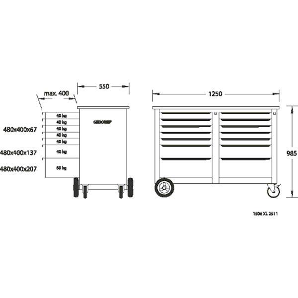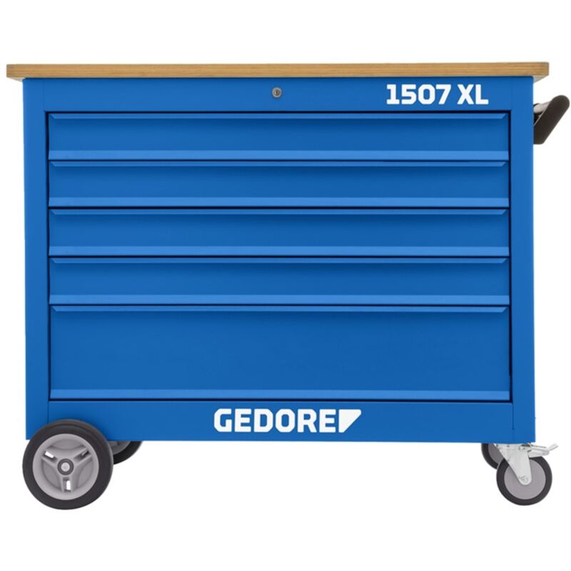 Das ist mal eine echte Profi-Werkbank! Die GEDORE Rollwerkbank mit stolzen 125 cm Breite bietet dir so viel Stauraum, dass du nie wieder Werkzeug suchen musst. Mit 18 Schubladen - davon einige mit 60 kg Tragkraft für richtig schweres Gerät. Die 30 mm dicke Buchenholz-Platte ist robust genug für jede Arbeit. Und das Fahrwerk trgt satte 700 kg - im mobilen Betrieb immerhin noch 500 kg. Die Zentralverriegelung mit Schloss sorgt dafür, dass dein Werkzeug sicher verwahrt ist. Aus stabilem Stahlblech in dem typischen GEDORE Blau, kratzfest und langlebig. Mit den rollengelagerten Rädern (200 mm) und Leichtlaufrädern (125 mm) schiebst du die Werkbank mühelos durch die Werkstatt. Made in Germany - Qualität, auf die du dich verlassen kannst!