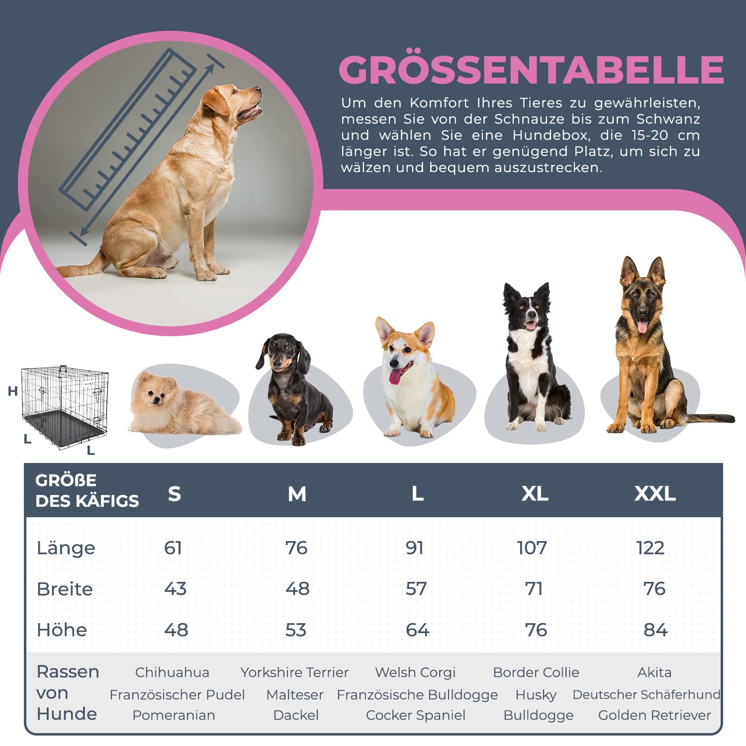 Diese Hundebox ist ja mal richtig clever designed! Die sieht nicht aus wie ein langweiliger Käfig, sondern wie ein stylisches Möbelstück in schickem Schwarz-Weiß. Mit den Maßen 137 x 57 x 85 cm ist sie perfekt für mittelgroße bis große Hunde. Das Besondere: Unten drin sind drei praktische Schubladen (je 39x38x12,5 cm), wo du ganz easy Hundespielzeug, Leinen, Futter oder was auch immer verstauen kannst. Aus robustem PB-Holz und pulverbeschichtetem Eisen gebaut - also mega stabil und langlebig. Die Gitter sorgen für gute Belüftung und dein Hund hat seinen eigenen Rückzugsort. Kann auch super als Sideboard oder TV-Schrank genutzt werden. Wichtig: Mit dem mitgelieferten Kippschutz unbedingt an der Wand befestigen! Einfach aufzubauen und die glatte Oberfläche ist super pflegeleicht. Style und Funktion in einem!