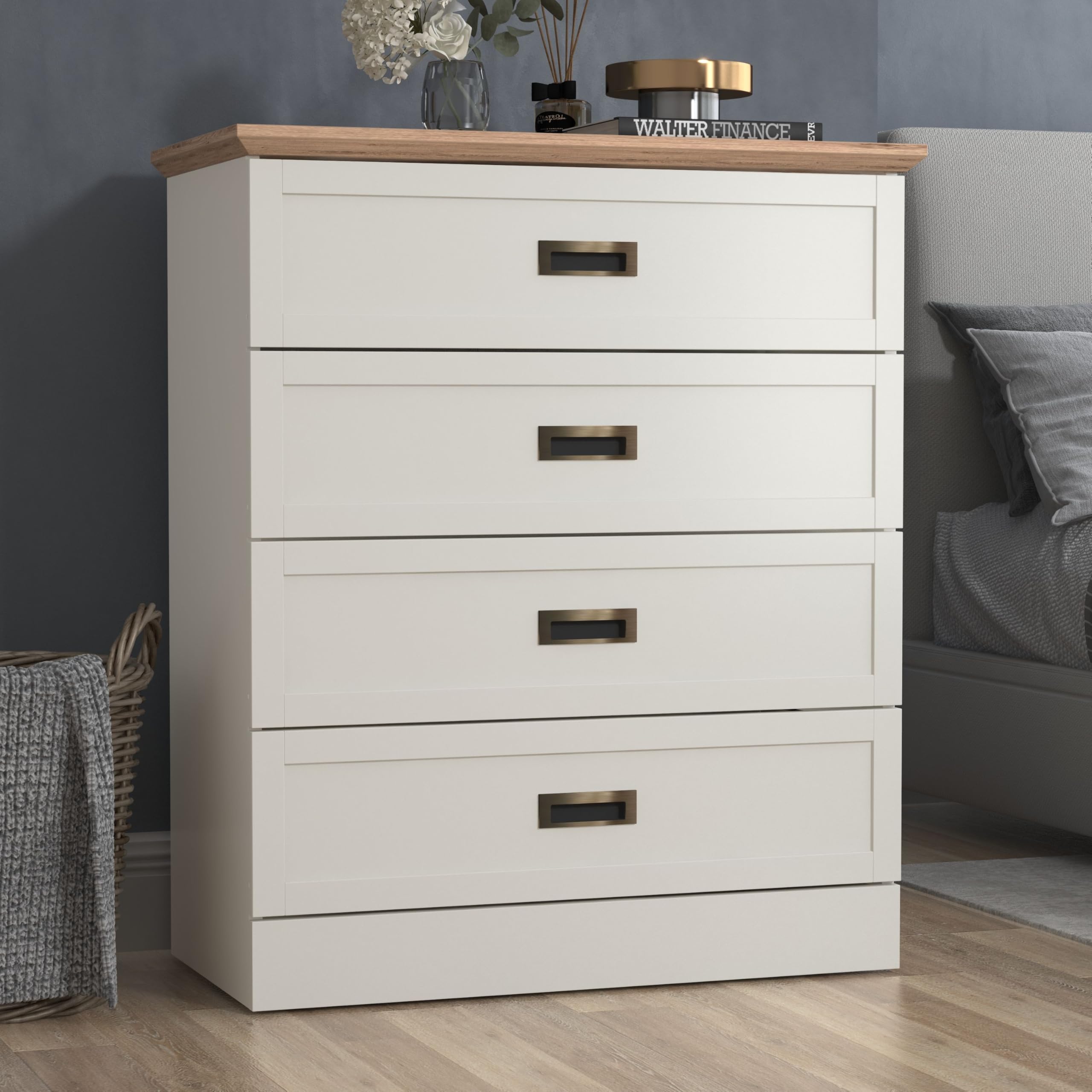 Garvee 4-Schubladen Kommode Weiß - Moderner Kleiderschrank Für Wohnzimmer & Schlafzimmer - 90x60x40cm Stauraum Möbel
