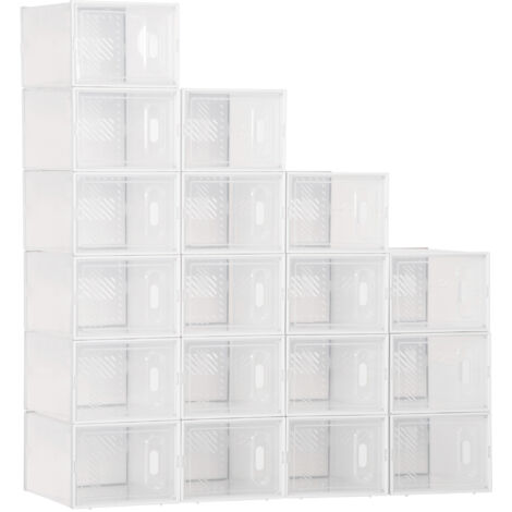Also, diese Schuhboxen sind ja mal richtig praktisch! 20 Stück bekommst du - damit kannst du deine ganzen Schuhe ordentlich verstauen. Aus PP und ABS Material, also stabil und wasserdicht. Maße sind 33x23x14 cm pro Box - passt für die meisten Schuhe.
