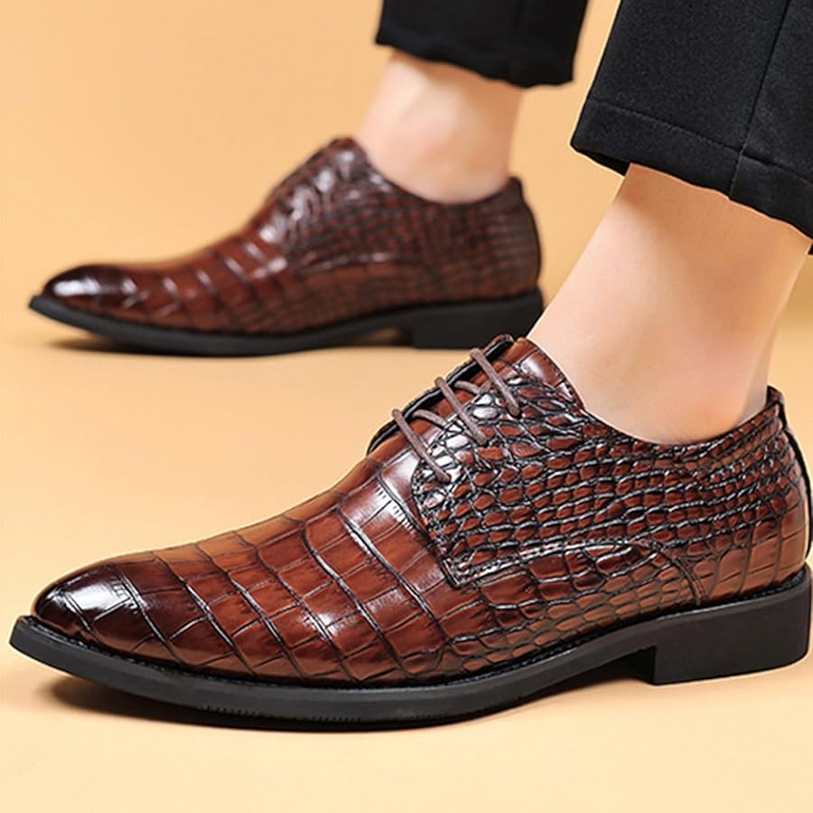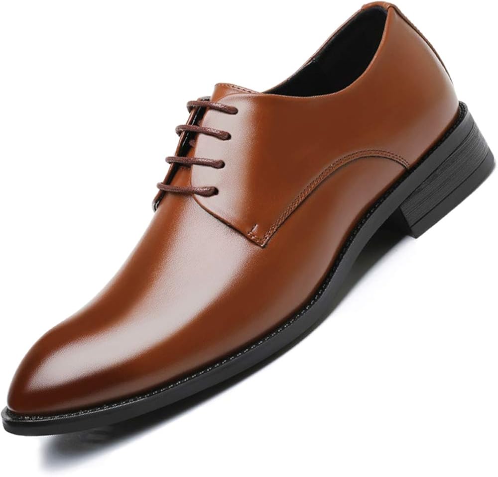 Stylische Business-Schuhe, die was hermachen! Diese Hitmars Derby Schuhe in Braun sind der perfekte Begleiter fürs Büro, Hochzeiten oder andere formelle Anlässe. Aus hochwertigem Kunstleder sehen sie aus wie echt und sind dabei super strapazierfähig. Der 30mm Blockabsatz gibt dir die richtige Eleganz, ohne auf Komfort zu verzichten. Die flexible Sohle ermöglicht ein natürliches Abrollen - damit läufst du den ganzen Tag bequem. Und die gepolsterte Innensohle dämpft jeden Schritt zusätzlich. Ob zum Anzug oder zur eleganten Hose - diese Schuhe machen immer eine gute Figur. In Größe 46 erhältlich, passen sie optimal und sehen einfach klasse aus. Modernes Design trifft hier auf traditionelle Handwerkskunst. Deine Füße werden's dir danken - und dein Style wird definitiv aufgewertet!