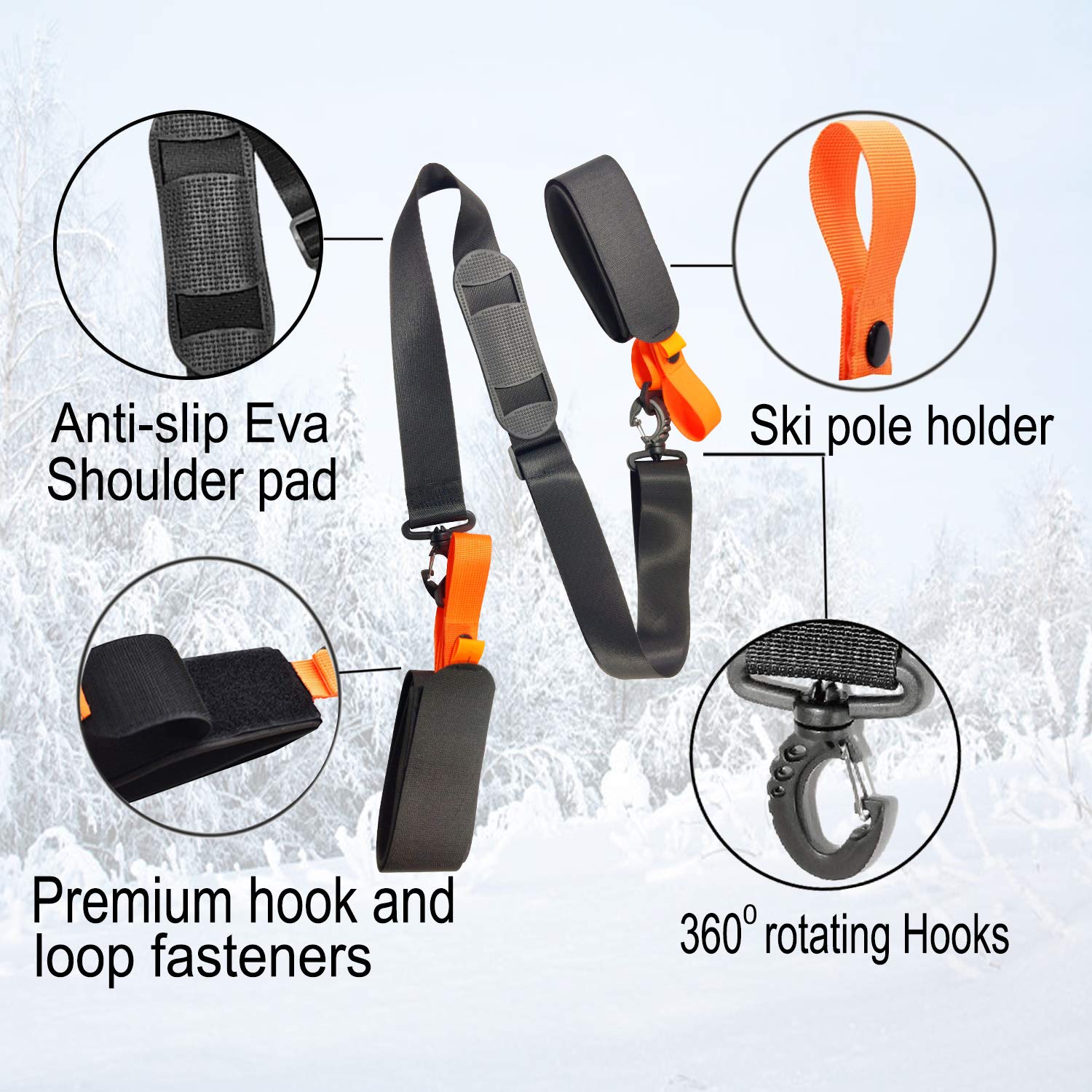Schluss mit dem lästigen Schleppen deiner Skier und Stöcke! Dieser praktische Tragegurt macht den Transport zum Kinderspiel. Einfach über die Schulter werfen, Skier einhaken und losgehen - total bequem und handsfree. Der Schultergurt ist verstellbar und passt sich so jeder Körpergröße an, ob für Erwachsene oder Kinder. Das Gewicht verteilt sich super, sodass es sich auch auf längeren Wegen angenehm trägt. Aus robustem, wetterfestem Material, das auch bei Schnee, Regen oder starker Sonne nicht schlappmacht. Schnell an- und abzulegen, ideal für unterwegs, den Weg zur Piste oder auf Reisen. Verstaut sich klein und ist immer griffbereit. Endlich mehr Komfort beim Skifahren!