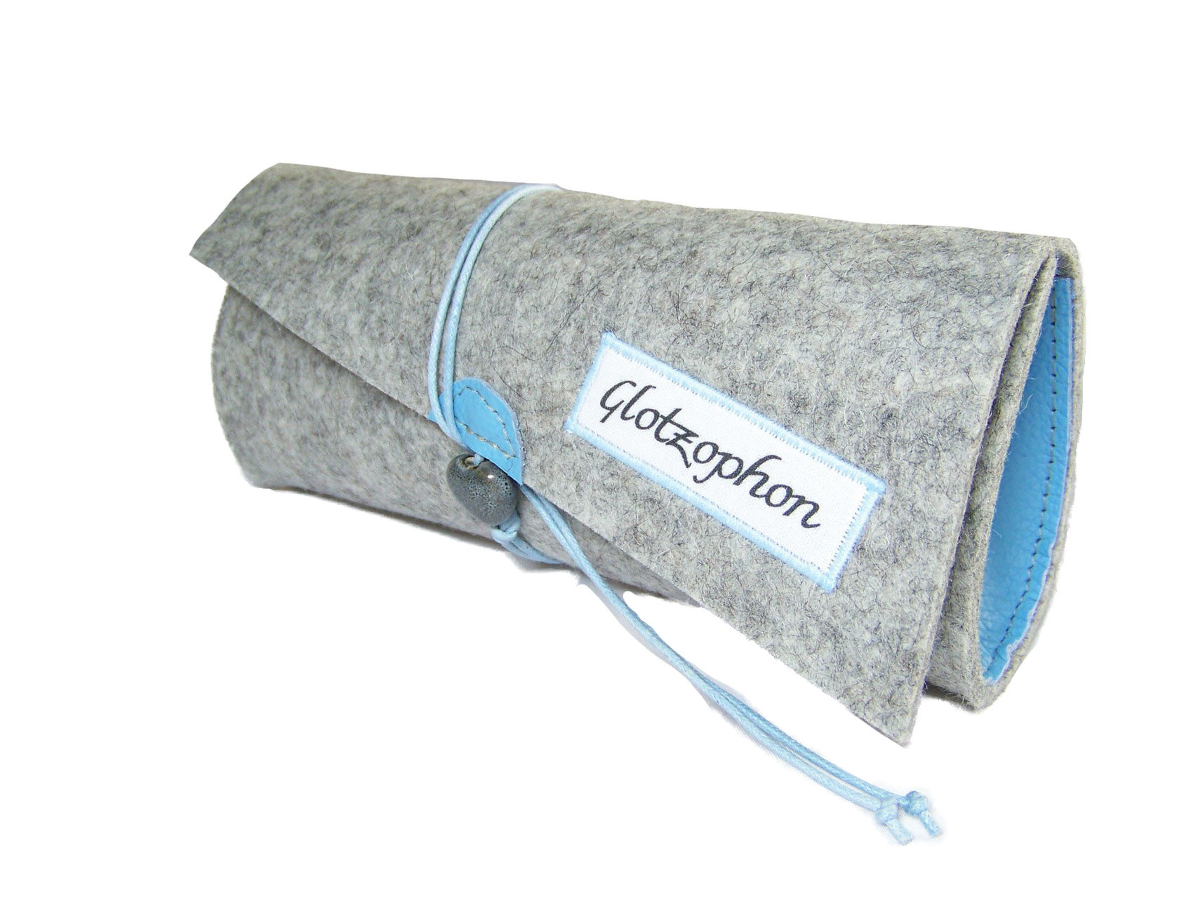 • Brillenetui FINN Aus Wollfilz - Schutzhülle Für Brillen Hellgrau/azur