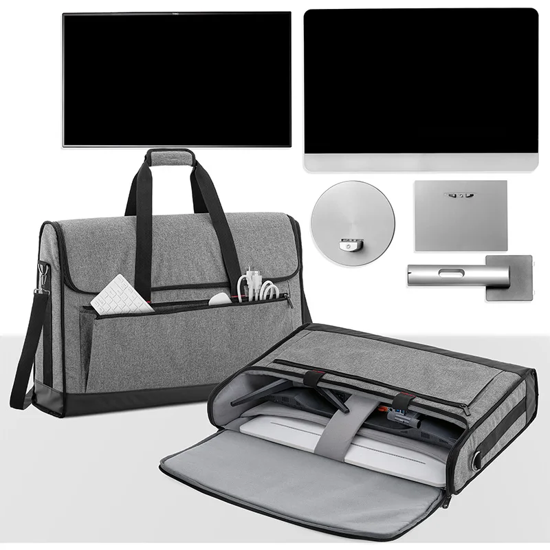 Sicher unterwegs mit deinem Monitor! Diese praktische Tragetasche passt perfekt für 24-Zoll LCD Bildschirme. Mit gepolstertem Samtfutter das vor Stößen, Staub und Kratzern schützt. Maße: 70x55 cm aufgeklappt. Vordere Tasche für Tastatur, Maus und Kabel, hintere Mesh-Tasche für Kleinteile. Aus robustem 600D Mattstoff mit Baumwoll-Flanell-Futter. Leicht (625 g) mit stabilen Tragegriffen. Einfach Monitor einwickeln, Seitenflügel schließen, Schnallen fixieren - schon ist dein Monitor reisefertig. Perfekt für Pendler, Messen oder Büroumzüge. Endlich sorgenfreier Transport!