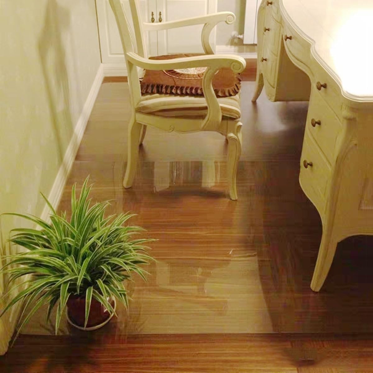 Schluss mit Kratzern auf deinem schönen Boden! Diese durchsichtige Bürostuhlunterlage schützt deine Holzböden, Fliesen oder Laminat vor den lästigen Rollen deines Bürostuhls. Die 1mm dicke PVC-Matte ist super robust und hält auch starke Belastungen problemlos aus! Das Beste: Sie ist komplett transparent - dein schöner Boden bleibt also voll sichtbar und die Matte stört nicht das Gesamtbild deines Raumes! Die rutschfeste Unterseite sorgt dafür, dass die Matte sicher an Ort und Stelle bleibt, selbst wenn du dich kräftig im Stuhl bewegst. Ob im Homeoffice, im Büro oder in der Küche - diese Unterlage ist ein echter Allrounder! Du kannst sie auch unter Computertische, Esstische oder andere Möbel legen. Wenn du die Matte zuschneiden musst, geht das ganz einfach mit einem Cuttermesser oder einer Schere. Anfangs kann sich der Rand etwas wellen - einfach mit schweren Gegenständen beschweren, dann legt sich das schnell! Mit verschiedenen Größen erhältlich, findest du für jeden Raum die passende Matte. So machst du deine Böden langlebiger und sparst dir teure Renovierungen!