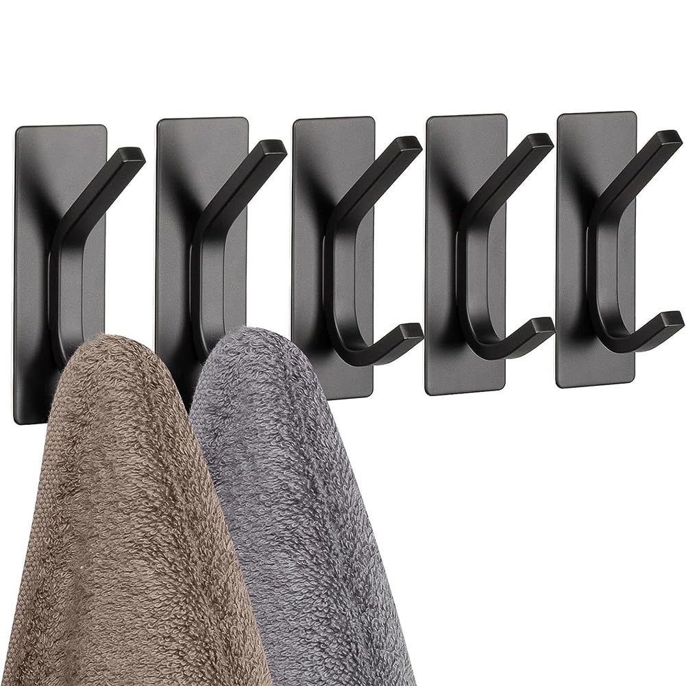 Schluss mit Löcher bohren! Diese 5 schwarzen Klebehaken mit extra starker Klebefläche halten sicher auf glatten Oberflächen - ganz ohne Bohrmaschine.