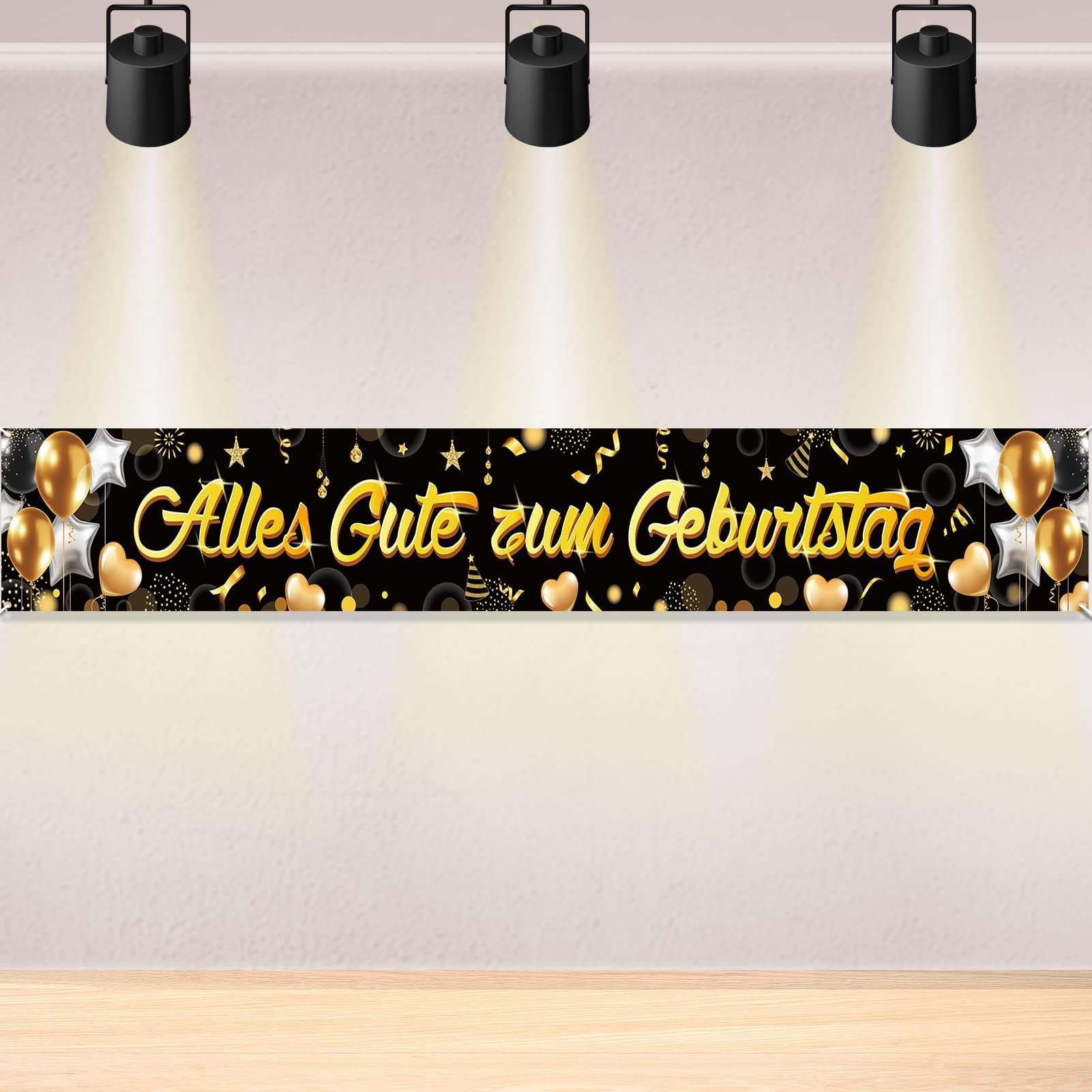 Boah, dieses Geburtstagsbanner ist ja der absolute Hingucker für deine nächste Party! Mit satten 180 x 110 cm Größe ist es richtig imposant und füllt jede Wand. Das schwarz-goldene Design mit Glitzer-Effekt sieht mega edel aus und passt zu fast jedem Party-Thema. Ob für Frauen, Männer oder Jugendliche - mit den klassischen Motiven wie Krone, Geschenkbox, Luftballons und Wimpeln trifft es immer den richtigen Style. Aus hochwertigem Vinyl gefertigt, leuchten die Farben super intensiv und die Oberfläche ist entspiegelt - perfekt für Fotos ohne lästige Reflexionen! Der Aufbau ist total einfach: Einfach aufhängen und schon verwandelst du jeden Raum in eine Party-Location. Das Material ist knitterfrei und bleibt die ganze Feier über makellos. Super als Fotohintergrund für deine Geburtstags-Fotos - da werden die Erinnerungen gleich noch schöner! Egal ob im Wohnzimmer, im Garten oder im Partykeller - dieses Banner macht einfach was her. Einfach aufhängen und dich über die begeisterten Reaktionen deiner Gäste freuen!