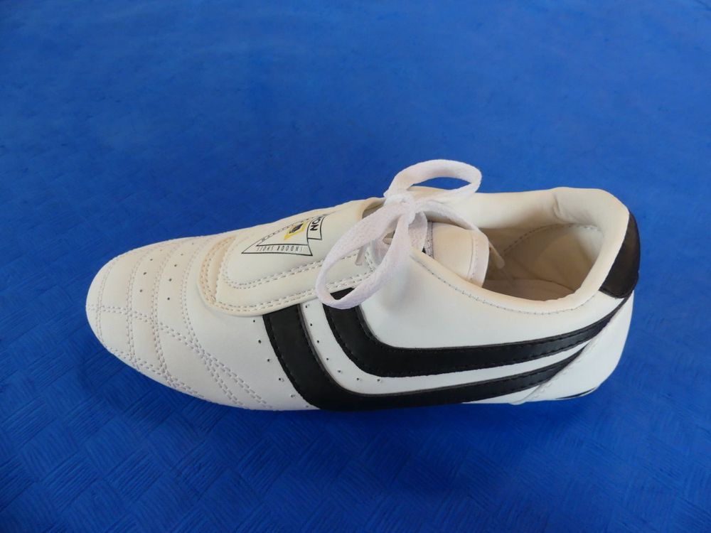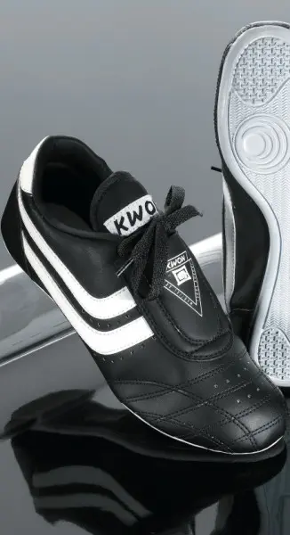 Perfekt für Kampfsport und Training! Die Kwon Chosun Plus Schuhe in Größe 42 sind klassische Indoor-Trainingsschuhe für Einsteiger. Aus strapazierfähigem Kunstleder mit dezent glänzenden Seitenstreifen. Die dünne, elastische Gummisohle gibt dir perfekten Bodenkontakt, die hochgezogene Ferse und Polsterung an Vorderfuß und Ferse sorgen für maximalen Komfort. Ventilationslöcher halten die Füße kühl, doppelte Nähte garantieren Langlebigkeit. Leicht, flexibel und robust - ideal für Kampfsport, Fitness oder einfach als bequeme Freizeitschuhe. In vielen Größen von 30-47 erhältlich!