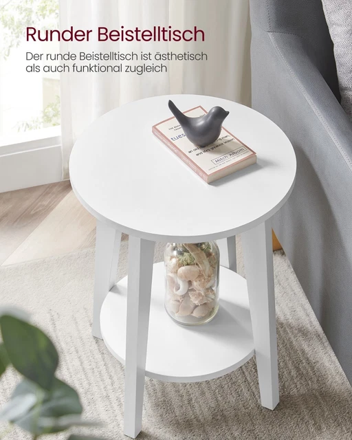 Dieser runde Beistelltisch bringt Stil in dein Zuhause! Mit dem schönen geschnitzten Design im Mid-Century-Look wird er zum echten Hingucker. Aus stabilem MDF gefertigt, wasserdicht und kratzfest - hält auch mal ein verschüttetes Getränk aus. Mit 30cm Durchmesser und 60cm Höhe perfekt für kleine Wohnungen, Studentenzimmer oder als zusätzlicher Tisch neben dem Sofa. Die verstärkten Metallbeine geben ihm super Stabilität. Einfach zusammenzubauen - kein Werkzeug nötig! Ob als Ablage für Getränke, als Nachttisch oder als Pflanzenständer - dieser Tisch ist total vielseitig. Macht in jedem Raum eine gute Figur!