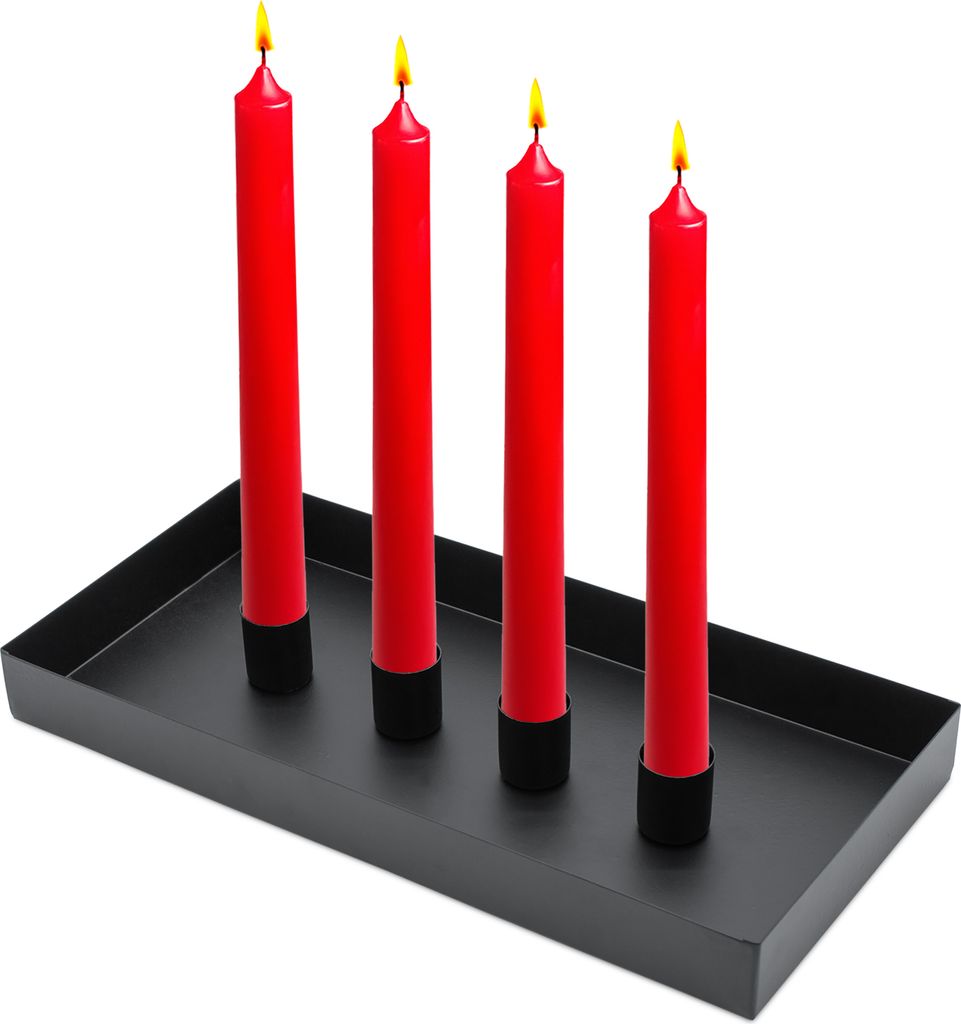 Modernes Kerzen-Deko für stylische Wohnungen! Dieses schwarze Metall-Tablett (23,5cm Durchmesser) mit 4 magnetischen Holzkugeln in verschiedenen Größen (4,5-6,5cm). Die Kugeln lassen sich frei positionieren - gestalte deine individuelle Kerzenanordnung. Perfekt für Stabkerzen bis 2cm Durchmesser. Ideal als moderner Adventskranz-Ersatz oder für romantische Abendstimmung. Einfach Kerzen in die Kugeln stecken - magnetisch halten sie sicher. Schickes Schwarz-Natur Design passt zu jedem Einrichtungsstil. Kerzen nicht im Lieferumfang enthalten. Mach deine Deko zum echten Hingucker!