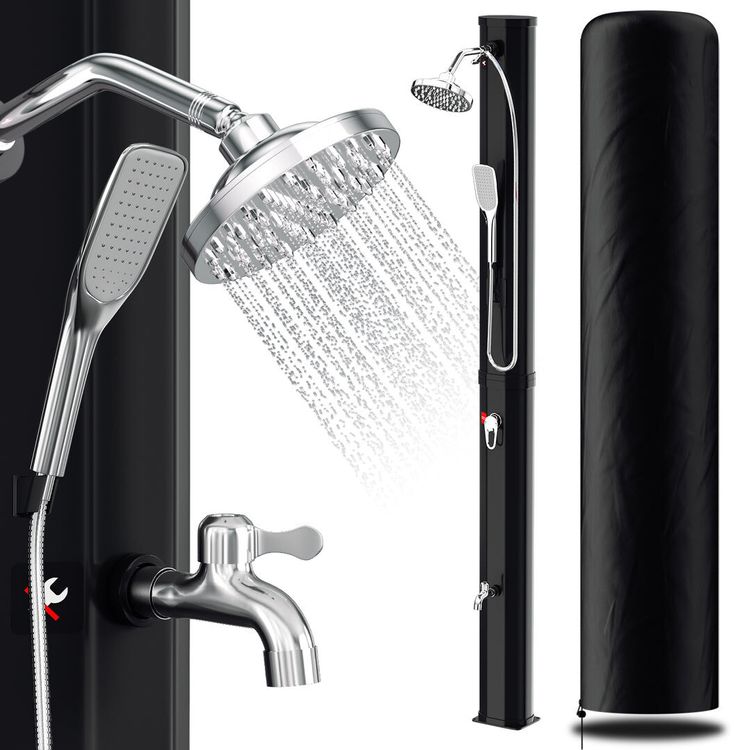 • Gartendusche Solar 35 Liter - Schwarz Mit Fußdusche & Regenduschkopf 20cm