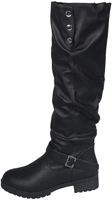Retro-Chic meets moderner Komfort! Diese schwarzen Kniestiefel aus weichem Kunstleder sind der absolute Hingucker. Die seitlichen Metall-Schnallen verleihen dem klassischen Design einen edlen Touch, während die leicht geraffte Optik für besonderen Style sorgt. Mit flachem Absatz und bequemer Sohle perfekt für den ganztägigen Tragekomfort - ob im Office, auf der Party oder beim Stadtbummel. Einfach zu reinigen und vielseitig kombinierbar mit Röcken, Kleidern oder engen Jeans. Der perfekte Begleiter für Herbst und Winter - stylisch, bequem und absolut im Trend. Hol dir den Look, der garantiert auffällt!