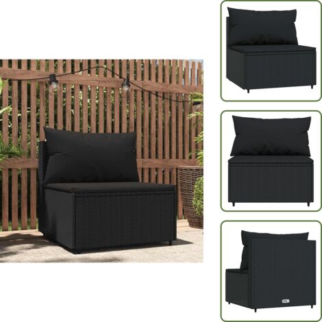 VidaXL Garten-Mittelsofa Schwarz - PE Rattan Mit Kissen Outdoor