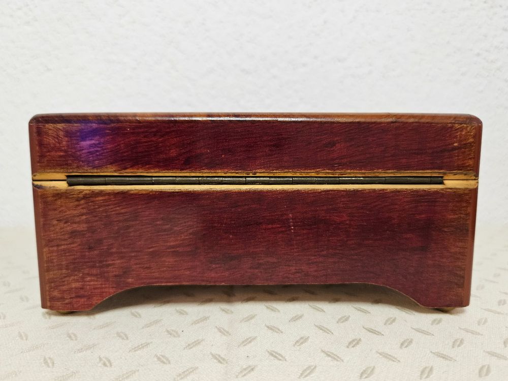 Diese Spieluhr ist einfach nur bezaubernd! Aus schwarzem Birnenholz gefertigt, sieht sie nicht nur edel aus, sondern spielt auch noch 'Unchained Melody' - einer der schönsten Songs ever! Der Musikmechanismus kommt von Sankyo, der weltweit bekannten Marke aus Japan, und spielt etwa 15-20 Sekunden lang. Einfach den Schlüssel 4 Mal aufziehen und schon erklingt die Melodie für 2-3 Minuten. Im Deckel ist sogar ein kleiner Spiegel - praktisch und hübsch zugleich. Perfekt als Geschenk für Liebhaber, Familienmitglieder oder Freunde. Mit nur 150 Gramm ist sie leicht und handlich. Die goldfarbenen Akzente machen sie zu einem echten Schmuckstück. Einfach aufstellen, aufziehen und den wunderschönen Klängen lauschen - Balsam für die Seele!