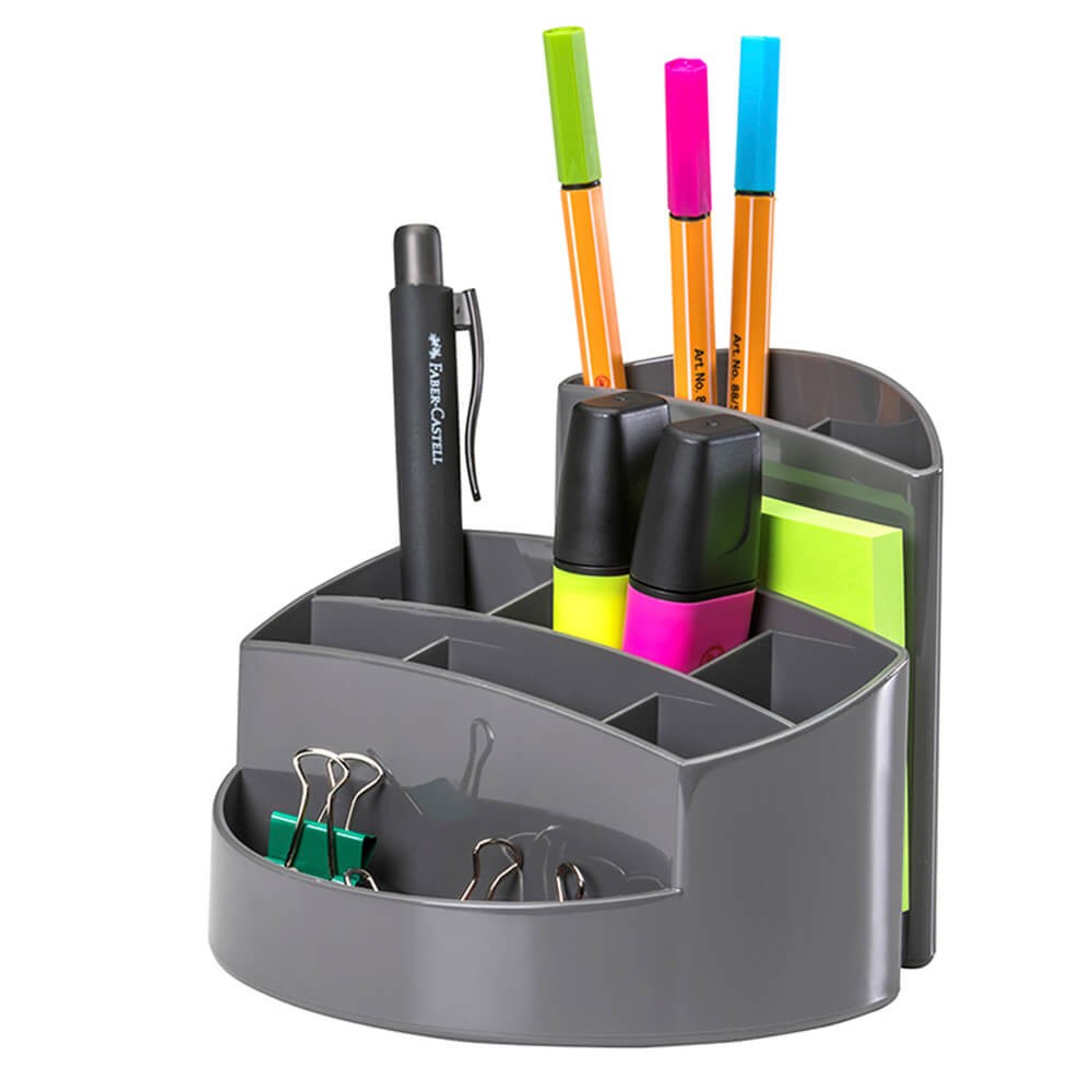 Endlich Ordnung auf dem Schreibtisch! Der CEP Isis Stiftköcher mit 4 praktischen Fächern bringt System in dein Büro-Chaos. Aus robustem Polystyrol, das zu über 90% aus Recyclingmaterial besteht - gut für die Umwelt! Maße: 89x98x118mm (BxHxT), passt auf jeden Schreibtisch. Platz für bis zu 45 Stifte plus ein Extra-Fach für Kleinkram. Das moderne Design sieht nicht nur gut aus, sondern ist auch 100% recycelbar. Perfekt für Büro, Home-Office oder Schülerzimmer. Einfach Stifte, Marker und Bürokleinkram sortiert verstauen und sich über den aufgeräumten Arbeitsplatz freuen!
