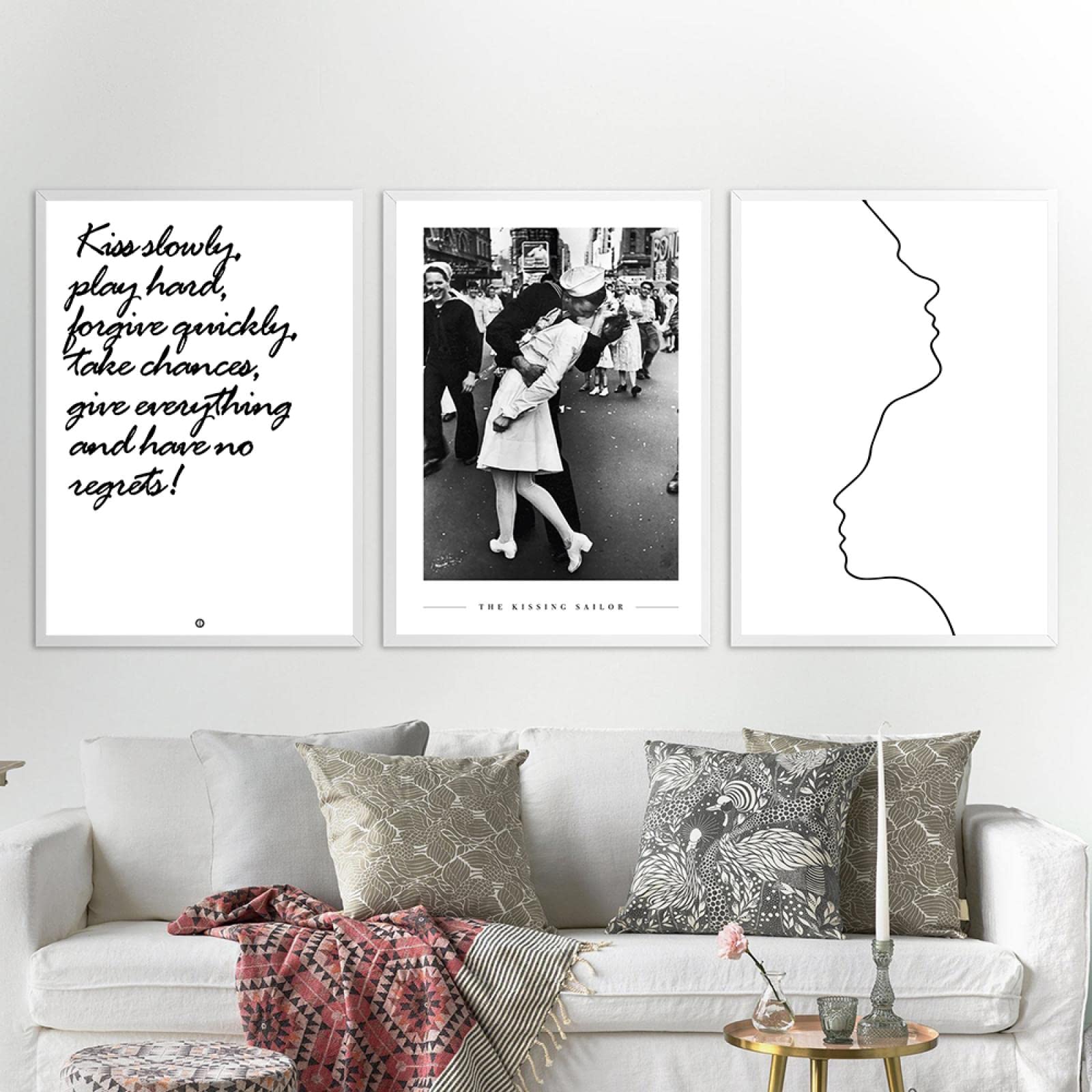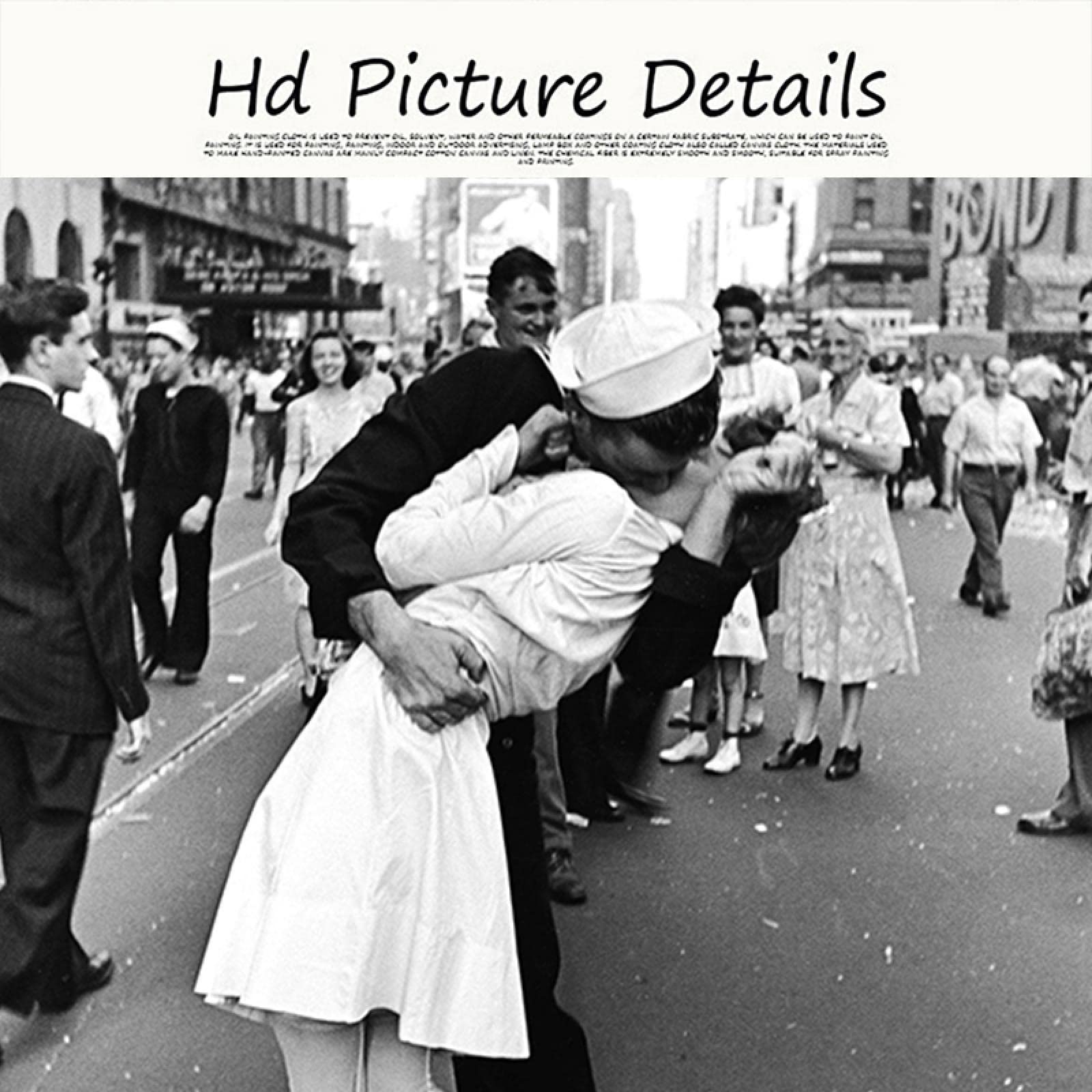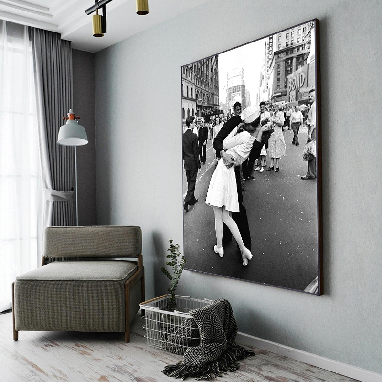 Dieser ikonische 'The Kissing Sailor' Druck bringt Stil und Geschichte in deine vier Wände! Das schwarz-weiß Foto kommt auf hochwertiger Leinwand daher und ist schon auf einem soliden Holzrahmen aufgespannt - komplett fertig zum Aufhängen also. Mit 60x80 cm (das sind 24x32 Zoll) ist es ein echter Hingucker im Wohnzimmer, Schlafzimmer oder sogar im Flur. Die Farben sind super kräftig und UV-beständig, verblassen also nicht so schnell. Einfach die mitgelieferten Aufhänger anbringen und schon hast du eine professionelle Galerie-Atmosphäre zu Hause. Perfekt für alle, die Vintage-Charme lieben oder ein besonderes Geschenk suchen. Übrigens: Dieses Motiv ist ein echter Klassiker und passt zu fast jedem Einrichtungsstil, ob modern, industrial oder retro. Mach deine Wände persönlicher und geschichtsträchtig mit diesem zeitlosen Kunstwerk!