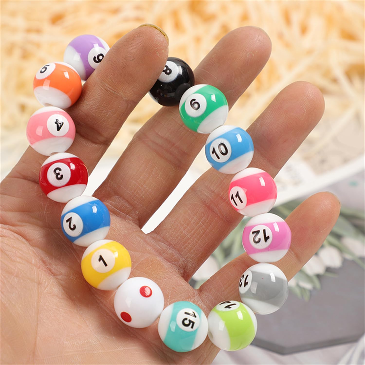 Hey du kreative Seele! Mit diesen 50 schwarzen Billardkugel-Perlen von HOMSFOU kannst du deine eigenen Schmuckstücke gestalten. Jede Perle ist etwa 11x11x11 mm groß und hat ein Loch zum Auffädeln - perfekt für Armbänder, Halsketten oder andere Bastelprojekte. Die glänzende Oberfläche sieht total edel aus und das Acryl-Material ist robust und langlebig. Egal ob du für dich selbst bastelst oder ein besonderes Geschenk machen willst - mit diesen Perlen wird's was Besonderes. Super für Kinder (unter Aufsicht!), um die Feinmotorik zu trainieren, oder für Erwachsene, die ihr Hobby ausleben wollen. Der Kreativität sind keine Grenzen gesetzt - mix sie mit anderen Perlen oder lass sie solo glänzen. Einfach auffädeln und dein persönliches Schmuckstück ist fertig! So macht Basteln Spaß.