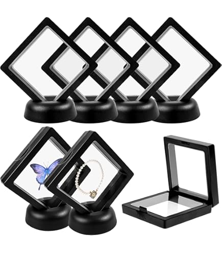 Präsentiere deinen Schmuck wie im Museum! Diese 4 schwebenden Display-Boxen schützen deine wertvollen Stücke vor Staub, Feuchtigkeit und Kratzern. Die transparente PE-Folie lässt alles gut sichtbar sein, während der feste Rahmen für Stabilität sorgt. Perfekt für Ringe, Armbänder, Münzen und kleinen Schmuck. Sieht super stylisch auf Kommode, Schminktisch oder Vitrine aus. Endlich Ordnung und Schutz für deine Schätze - und das bei vollem Durchblick!