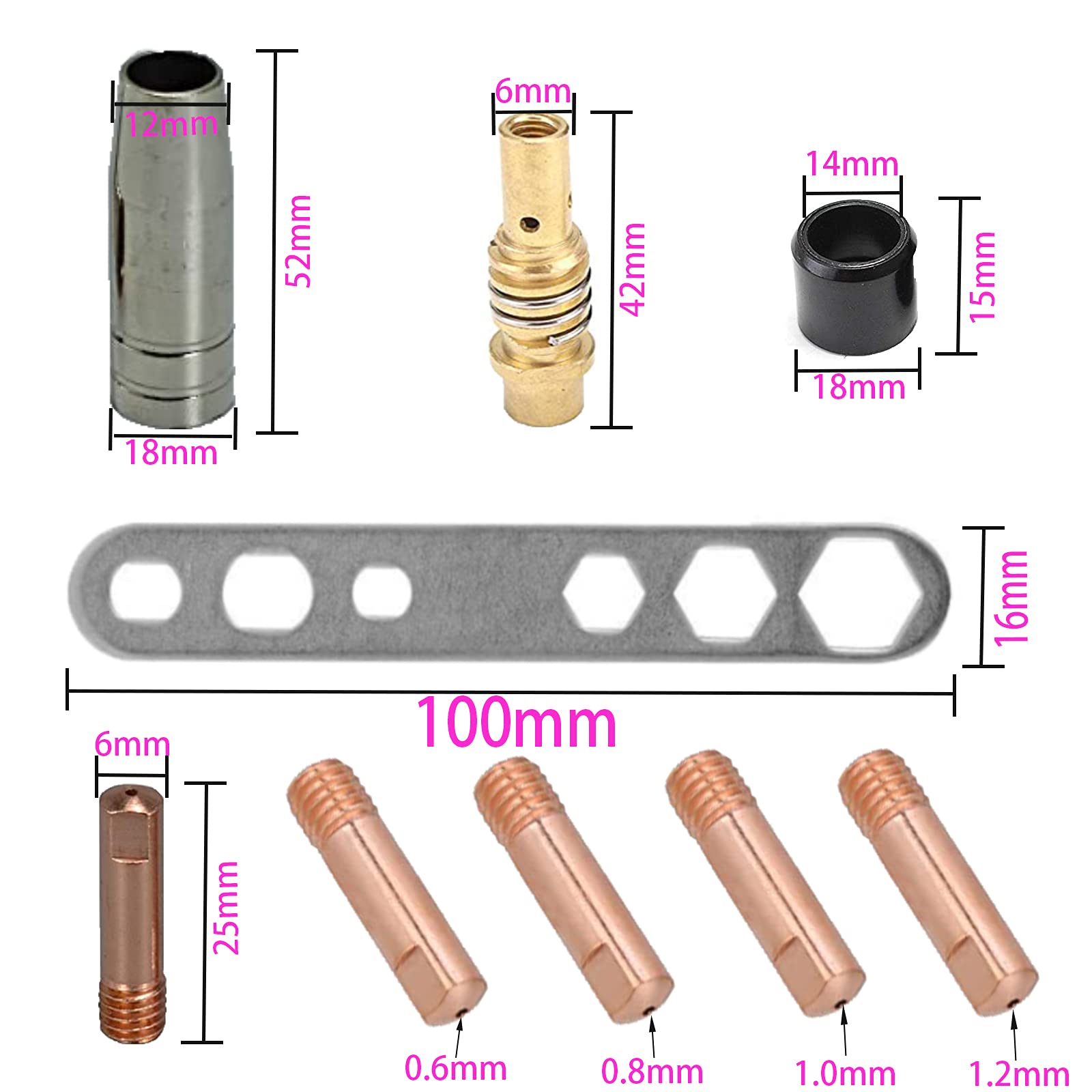 Professionelles Schweißen leicht gemacht! Dieses 14-teilige Set enthält alles, was du für deine MIG-Schweißarbeiten brauchst: 2 Düsen, 2 Halter und 10 verschiedene Düsenspitzen. Das Besondere: Die Düsen haben eine innovative isolierte Beschichtung, die für konsistente Leistung sorgt und vor hohen Temperaturen schützt. Perfekt für professionelle Schweißer und Metallarbeiter in Werkstätten, Automobilbereich oder industrieller Fertigung. Jede Düse ist ca. 5,3 x 1,9 cm groß - vor dem Kauf am besten die Kompatibilität mit deinem Equipment prüfen. Das isolierte Design verbessert die Schweißleistung erheblich und erhöht die Effizienz bei jeder Arbeit. So erzielst du bessere Ergebnisse und steigerst deine Produktivität. Ob für Reparaturen, Konstruktionen oder kreative Metallprojekte - mit diesem Set bist du bestens ausgerüstet. Einfach das richtige Zubehör auswählen und loslegen! Ein qualitativ hochwertiges Set, das sich schnell amortisiert. Rüste deine Schweißausrüstung auf und erlebe den Unterschied!