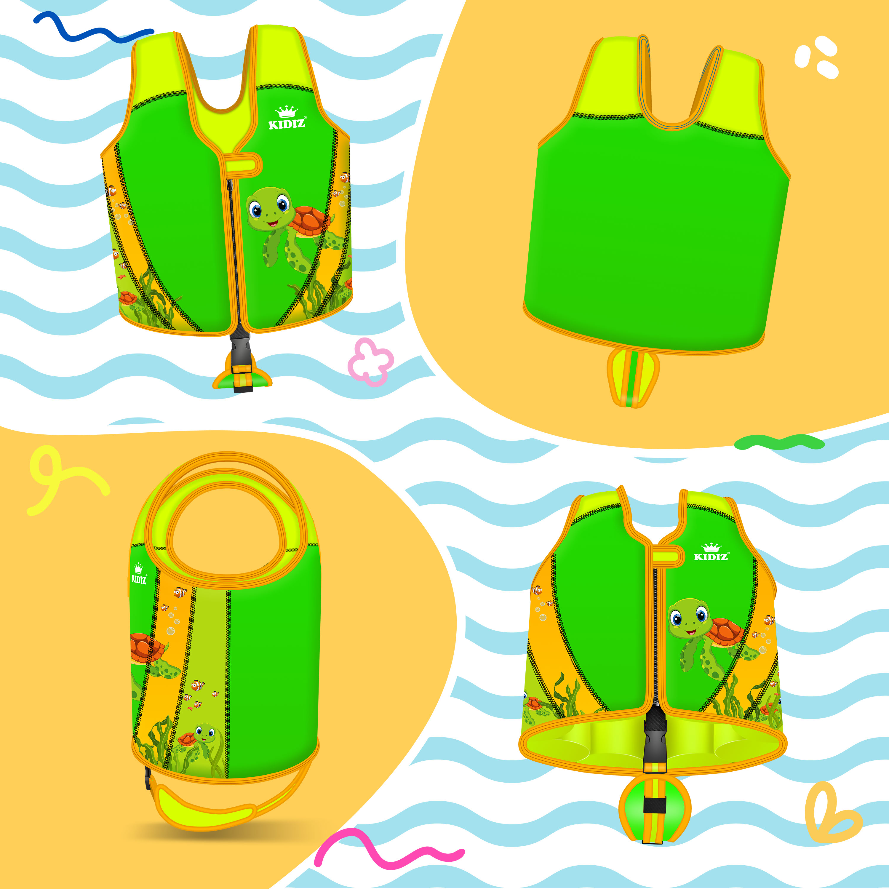 Puh, wenn die Kids ins Wasser wollen, will man ja auch ein gutes Gefühl haben. Diese Schwimmweste gibt dir genau das! Für Kinder von 3 bis 15 Jahren - also wirklich lange nutzbar. Die Weste hat ein cleveres Design das den Auftrieb gleichmäßig verteilt, sodass die Arme und Beine nicht so schnell ermüden. Die Schnallen sind super einfach zu verstellen und die Achselpolster super bequem. Ob im Pool, am See oder im Meer - dein Kind ist sicher unterwegs. Aus robustem PVC gemacht und mehrfach verstärkt, hält die Weste auch wildere Wasserschlachten aus. Inklusive Luftpumpe - alles was du brauchst ist dabei. Übrigens: Die Weste ist etwa 38x46cm groß - perfekt für kleine Wasserratten! So macht Schwimmen lernen richtig Spaß und du musst dir weniger Sorgen machen.
