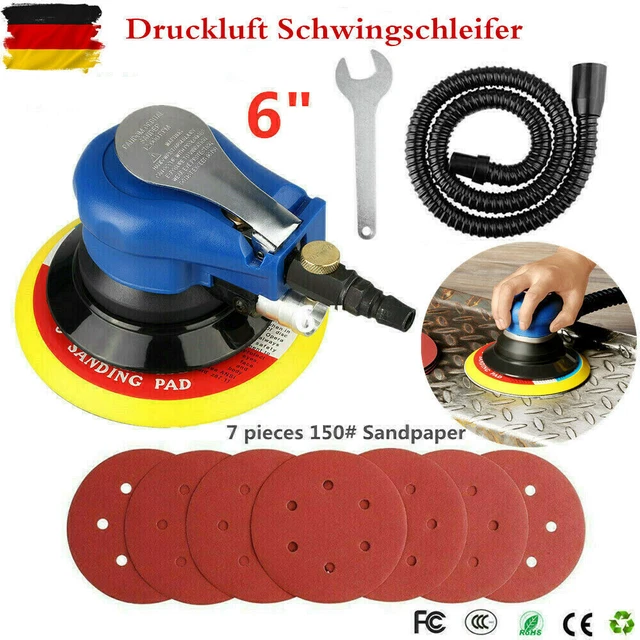 Professioneller Druckluft-Schwingschleifer von KS Tools - ideal für alle, die viel schleifen und polieren müssen! Mit 152 mm (6 Zoll) Schleifteller und Exzenter-Hub von 2,5 mm. Das ergonomische Design liegt super in der Hand und du kannst ihn easy mit einer Hand bedienen. Besonders praktisch: Die Platte hat 6 Absauglöcher - perfekt kombiniert mit Staubsauger oder Auffangbeutel. So bleibt deine Arbeitsumgebung sauber! Stufenlose Geschwindigkeitsregelung gibt dir totale Kontrolle über dein Arbeitsergebnis. Vibrationen sind minimal, also ermüdest du nicht so schnell. Der integrierte Luftauslassschlauch und das Verbundwerkstoff-Gehäuse machen das Arbeiten besonders präzise. Im Lieferumfang ist ein Staubauffangbeutel dabei, der mit 1/4\ Schnellkupplung angeschlossen wird. Ob in der Werkstatt oder auf der Baustelle - mit diesem Schleifer machst du einfach bessere Arbeit, schneller und mit weniger Staub. Ein echter Profi-Helfer!