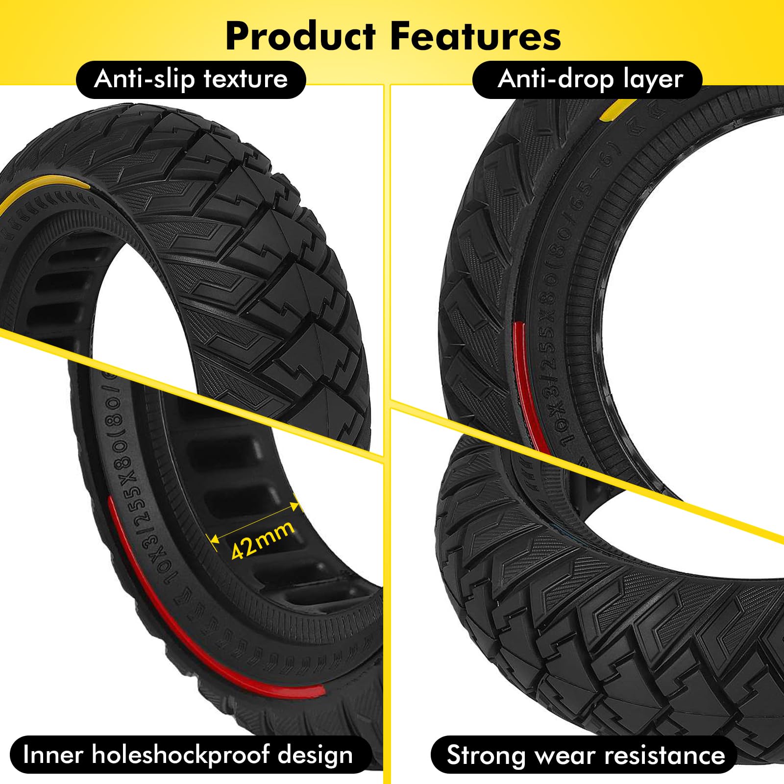 Endlich pannensichere Reifen für deinen E-Scooter! Diese 10 Zoll Vollgummi-Reifen mit den Maßen 255x80 mm sind die perfekte Lösung für alle, die keine Lust mehr auf Platten haben. Aus hochwertigem Naturkautschuk gefertigt, sind sie extrem langlebig und abriebfest. Das spezielle Anti-Rutsch-Profil gibt dir auch bei Regen und Schnee sicheren Halt. Die Reifen passen auf viele beliebte Modelle wie Zero 10X, Dualtron Eagle Pro, Kaabo Wolf Warrior, Kugoo M4 und viele mehr. Das interne Wabendesign verbessert die Stoßdämpfung und macht die Fahrt super komfortabel. Kein Aufpumpen nötig, keine Wartung - einfach montieren und losfahren! Bevor du bestellst, checke bitte ob die Größe zu deinem Scooter passt. Vor der Montage den Reifen etwas erwärmen, dann geht's leichter. Bei Fragen helfen wir dir gerne weiter - damit dein Scooter-Spaß nicht auf der Strecke bleibt!