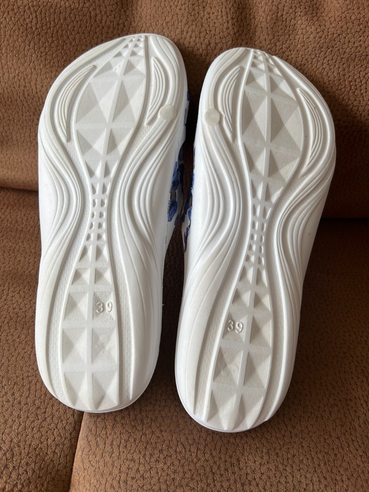 Die blaue Farbe ist fröhlich und passt zu allen Badeklamotten. Einfach reinschlüpfen und los geht's - kein langes Binden oder Schnüren. Und wenn sie schmutzig werden: einfach abspülen und trocknen lassen.