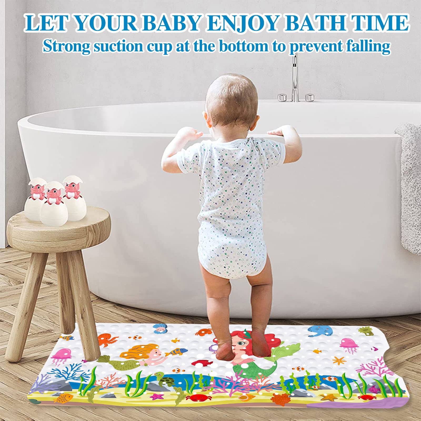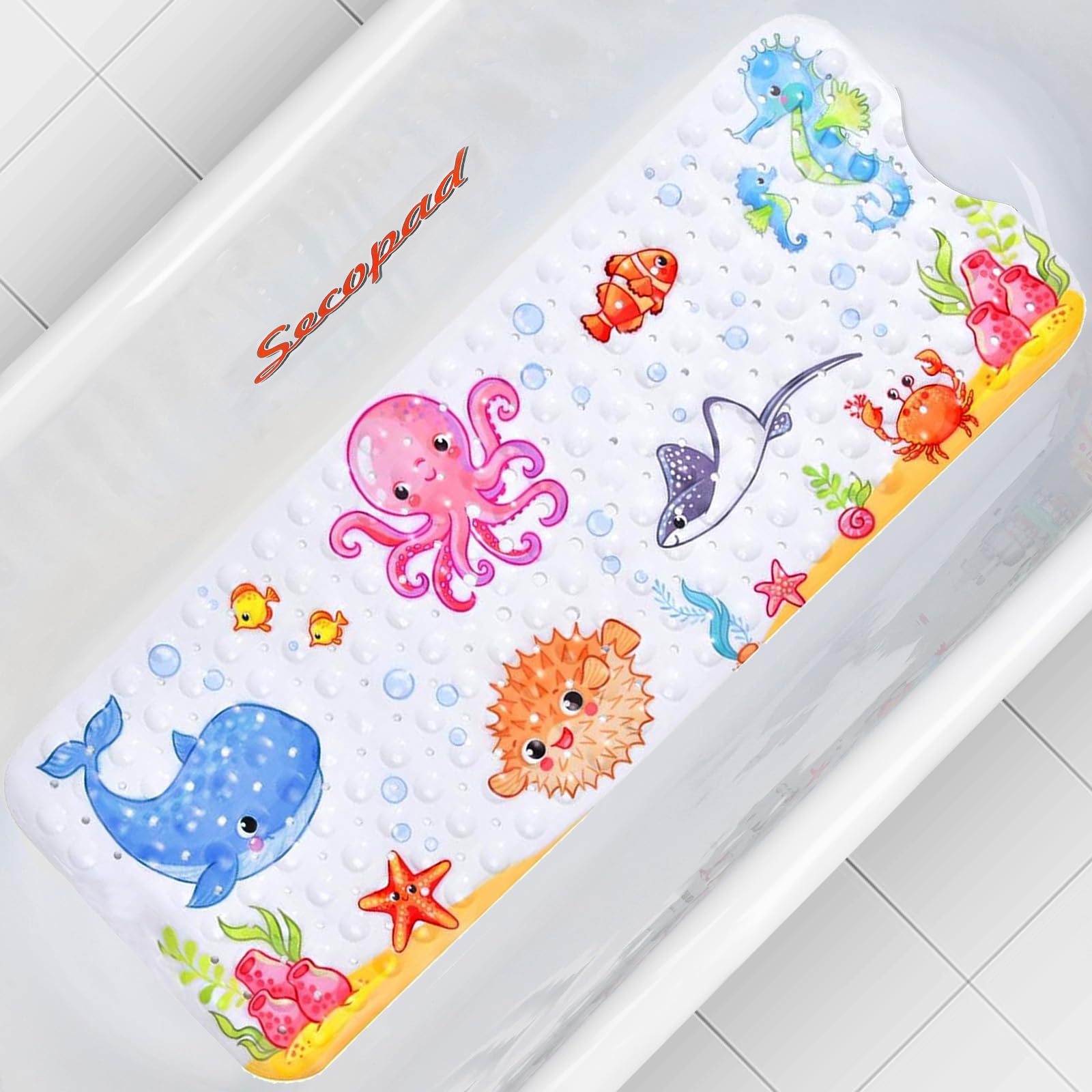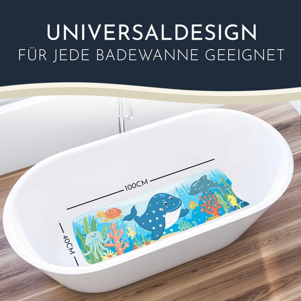 Mama, Papa - Badezeit ohne Stress! Diese süße Badewannenmatte mit Cartoon-Muster macht das Baden für eure Kleinen sicher und spaßig. Mit 100x40 cm passt sie perfekt in die meisten Badewannen. Das Beste: Über 250 Saugnäpfe auf der Unterseite sorgen für bombenfesten Halt - da rutscht nichts weg! Die Oberfläche hat eine spezielle Anti-Rutsch-Textur, die auch nass super Griff bietet. Und keine Sorge wegen Schimmel: Die Löcher lassen das Wasser super ablaufen. Total praktisch - die Matte ist maschinenwaschbar! Einfach in die Waschmaschine und fertig. Wichtig: Vor dem ersten Gebrauch 10 Minuten in warmem Wasser einweichen, dann glattstreichen und in die Wanne legen. Nur auf sauberen, glatten Oberflächen verwenden. 100% BPA-frei und hautfreundlich, also völlig unbedenklich für eure Kinder. Macht das Baden zum Vergnügen und sorgt für sicheren Badespaß!