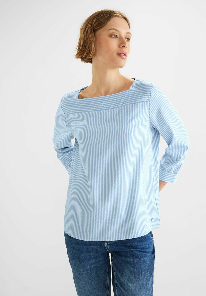 • Street One Damen Bluse Seersucker - Split Neck 3/4 Arm Knopfleiste