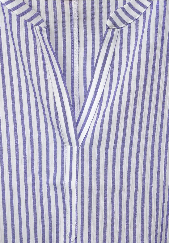 Street One Damen Bluse Seersucker - Split Neck 3/4 Arm Knopfleiste