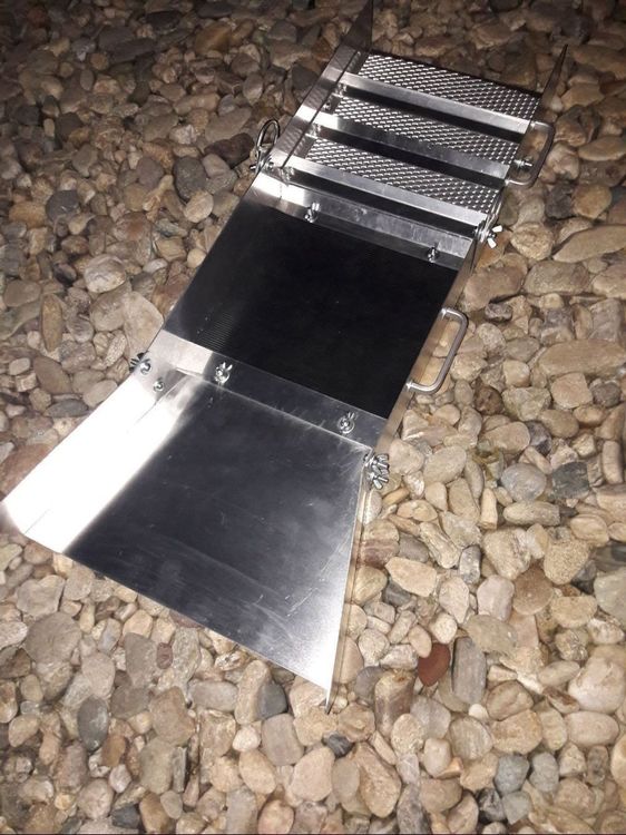 Hey Goldsucher! Diese zusammenklappbare Waschrinne aus Aluminiumlegierung ist dein perfekter Begleiter für Flüsse und Bäche. Mit 127cm Länge wenn ausgeklappt - und nur 40x15x35cm wenn zusammengeklappt! Super leicht und tragbar, passt in jeden Rucksack. Das integrierte Bergmannmoos fängt selbst feinste Goldflocken sicher ein. Die Wellenstruktur erzeugt perfekte Turbulenzen für maximale Ausbeute. Rostfrei und extrem stabil - hält auch rauem Gelände stand. Einfach ausklappen, im Wasser positionieren und los geht die Goldsuche! Ob Hobby oder Profi - mit diesem Tool macht Goldwaschen richtig Spaß. Dein nächstes Goldabenteuer wartet!