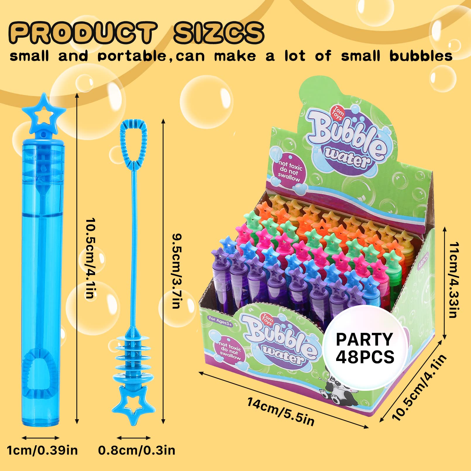 Wie süß sind denn diese Seifenblasen-Sterne! Perfekt als Mitgebsel für den Kindergeburtstag oder die nächste Party. Im 24er-Set - genug für alle kleinen Gäste.\n\n6 coole Macaron-Farben:\n- Blau, Lila, Grün\n- Rosa, Weiß, Gelb\n\nJeder Stern ist 10,7cm lang - perfekt für Kinderhände. Das auslaufsichere Design mit 5-Schicht-Struktur verhindert Flecken auf Kleidung und Taschen.\n\nSuper Features:\n- Transparentes Gehäuse - man sieht die Flüssigkeit\n- Fördert die Farbwahrnehmung\n- Ideal für drinnen und draußen\n- Perfekt für Eltern-Kind-Spiele\n- Soziales Spiel mit Freunden\n\nDie Kinder können beobachten wie die Flüssigkeit fließt und die Blasen entstehen - pädagogisch wertvoll und macht riesig Spaß! Einfach in der Tasche verstauen und überall mitnehmen. Der absolute Hit auf jeder Feier!